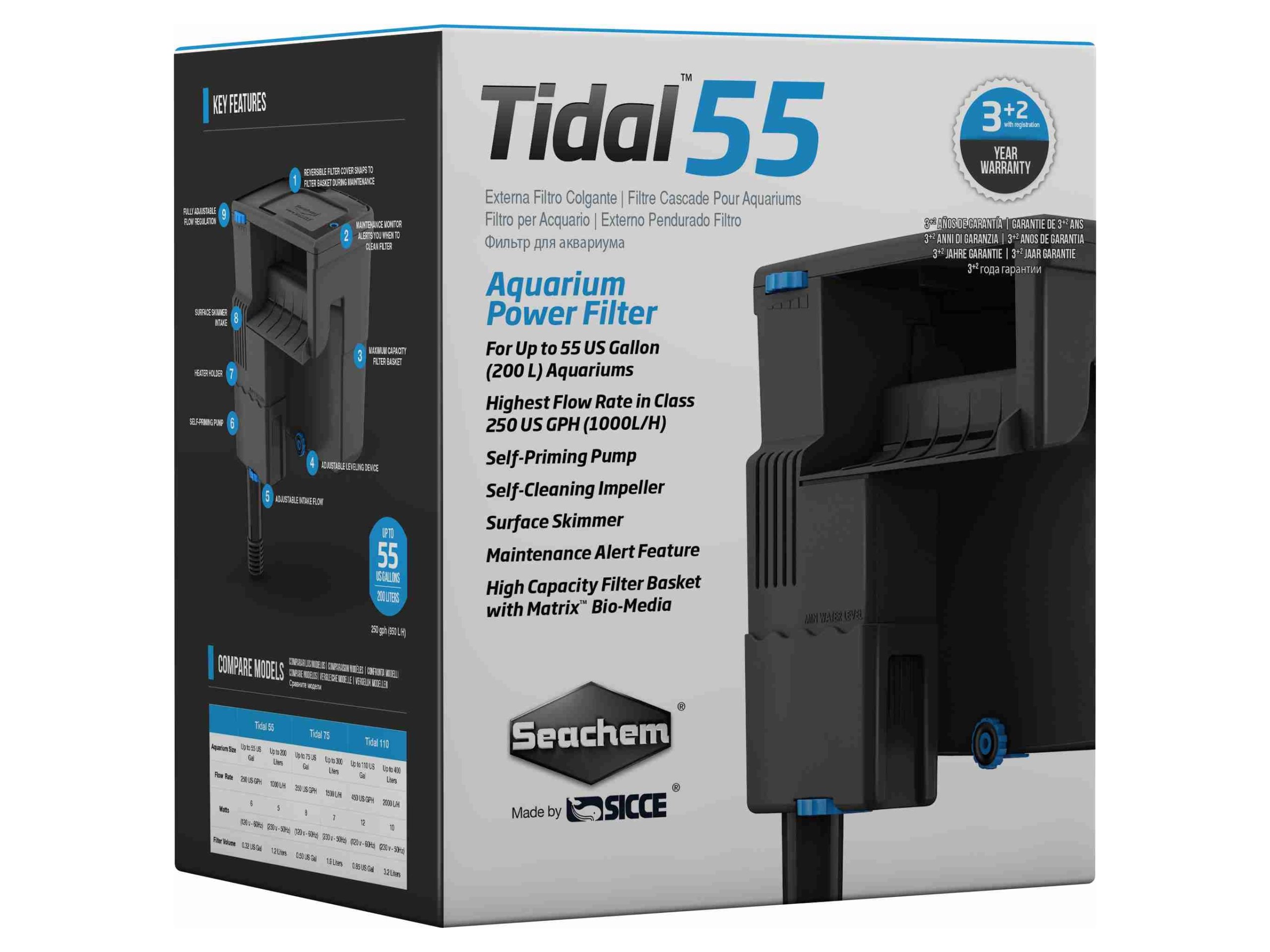 Приливные фильтры предназначены для обеспечения высококачественной и комплексной фильтрации в вашем аквариуме. Они просты в использовании и адаптированы к различным типам аквариумов. Они имеют множество функций, среди которых: самовсасывающий насос, двойной подвод воды с поверхностным фильтром, регулируемый поток, монитор технического обслуживания, самоочищающаяся крыльчатка и фильтрующая корзина для любого типа фильтрующего материала, а также готовый фильтрующий картридж в виде Матрица СМИ. Более того, фильтры Tidal™ созданы для обеспечения максимально возможного качества воды при максимальной универсальности и простоте использования. Они подходят для широкого спектра аквариумов от соленой до пресной воды объемом от 200 до 400 литров.