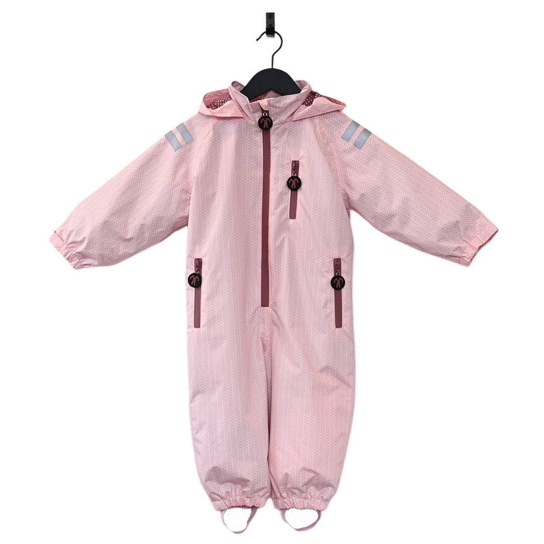 В комбинезоне есть гибкие стремяки, наложенные на ноги или обувь, три карманы, водонепроницаемые молнии с большой ручкой ползунка, манжеты на липучке, капюшон на липучке и отражающие ремни, увеличивающие видимость ребенка после темного 3M ™ Scotchlite ™.