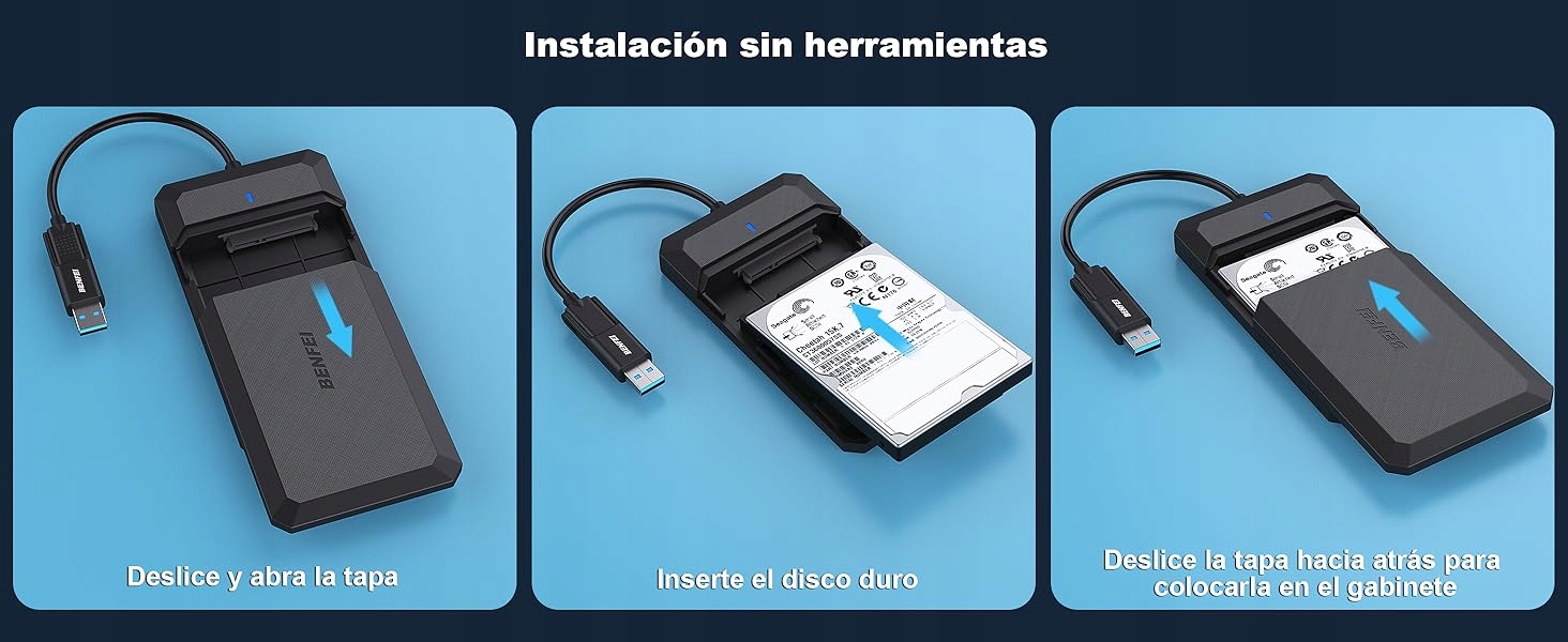 Превратите свой внутренний 2,5-дюймовый дисковод в быстрый и портативный внешний диск с помощью футляра BENFEI. Идеально подходит для работы дома, в офисе, в путешествии или для расширения памяти ноутбука. Благодаря конструкции, не требующей использования инструментов, прочному алюминиевому корпусу и быстродействующему интерфейсу USB D/A передача данных становится простой, безопасной и эффективной.