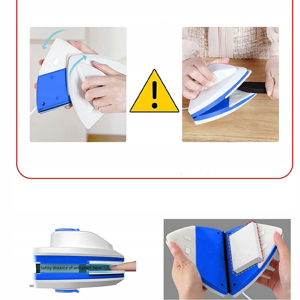 💦Сепаратор, препятствующий сжатию – для более толстого или двухслойного стекла требуется высокая магнитная сила, поэтому используйте этот магнитный стеклоочиститель правильно. Возьмитесь за ручку омывателя окон и поверните обе стороны омывателя окон на 90 градусов. Пожалуйста, обращайте внимание на свою руку, закрывая или снимая его.