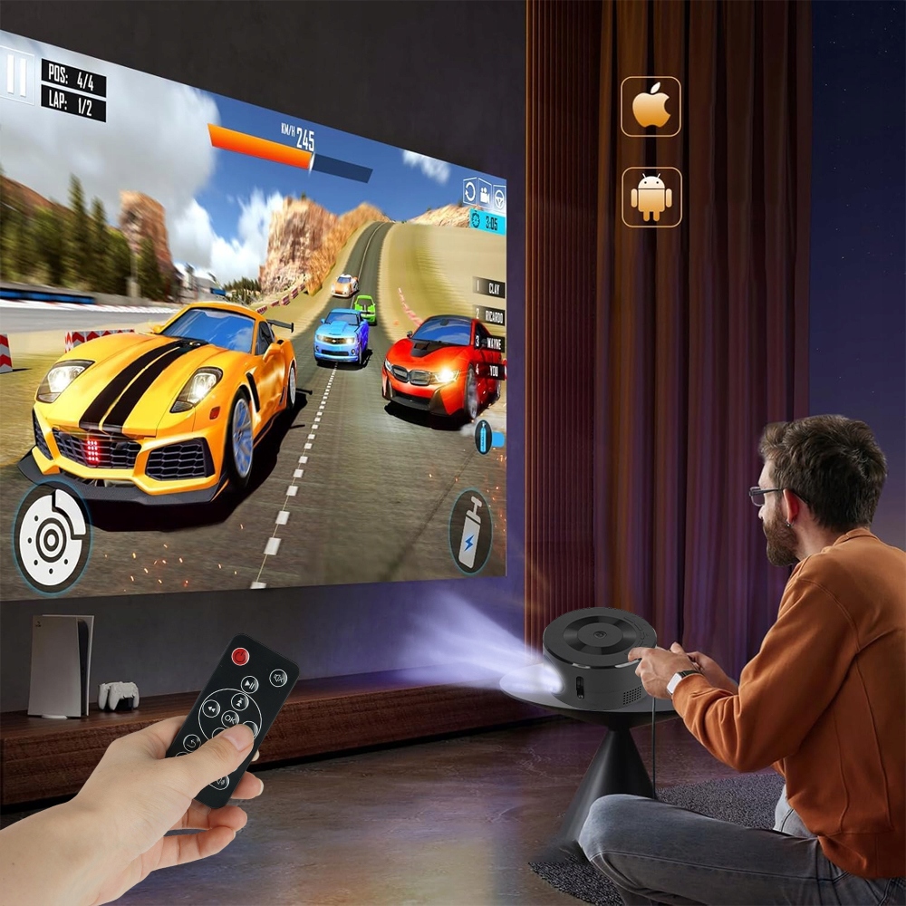 Этот HD -проектор предлагает функцию совместного использования экрана, которая подключается непосредственно к экрану, используя кабель зарядки, устраняя необходимость использования отдельного телефонного адаптера. Он поддерживает телефоны, планшеты и совместим с Android и iOS.