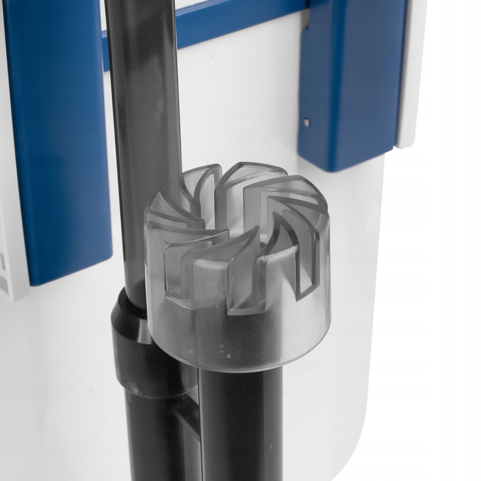 - Двойной подвод воды: фильтр всасывает воду через скиммер, непосредственно у поверхности воды, и через корзину на дне аквариума. Специальная ручка регулирует, сколько воды фильтр забирает «снизу или сверху».