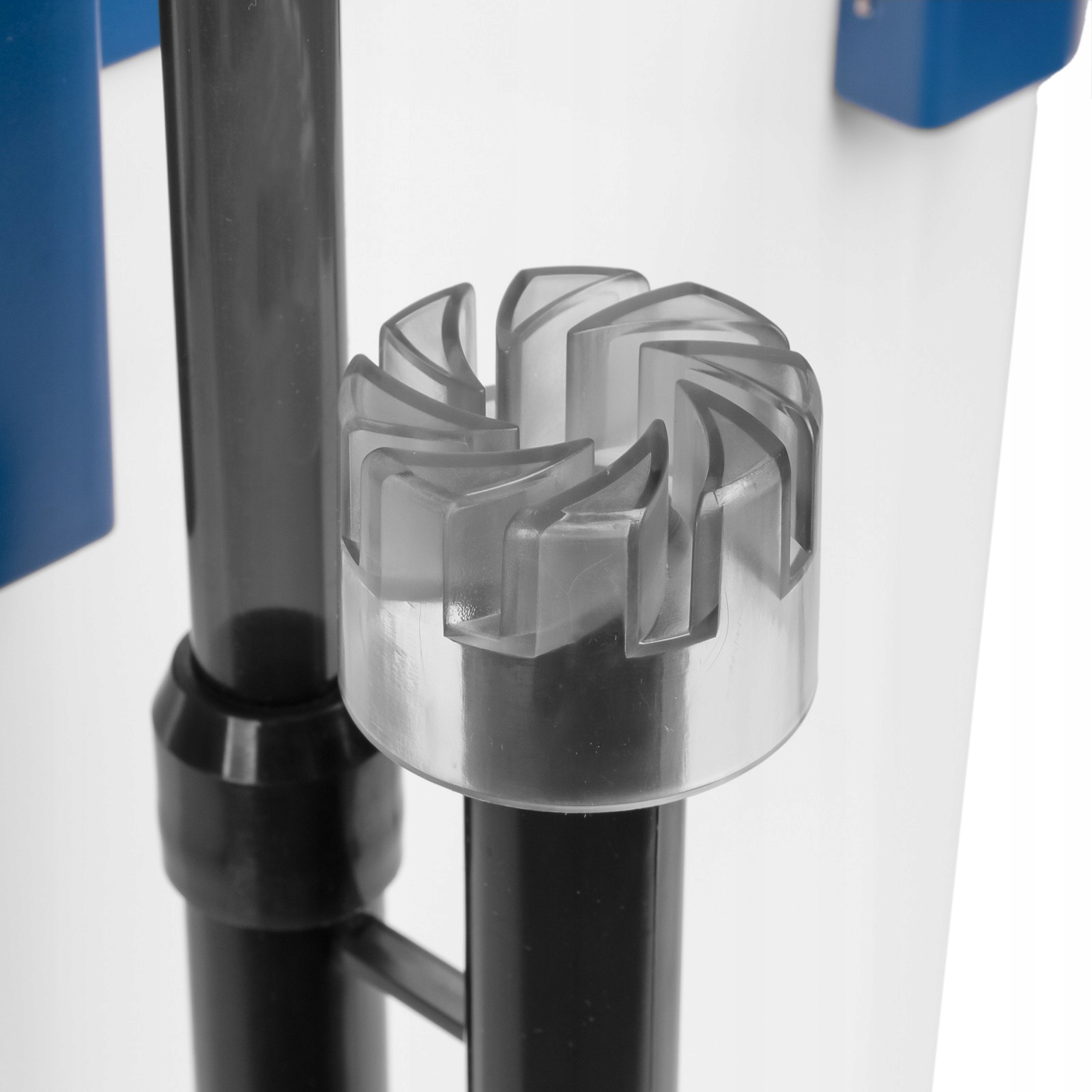 - Двойной подвод воды: фильтр всасывает воду через скиммер, непосредственно у поверхности воды, и через корзину на дне аквариума. Специальная ручка регулирует, сколько воды фильтр забирает «снизу или сверху».
