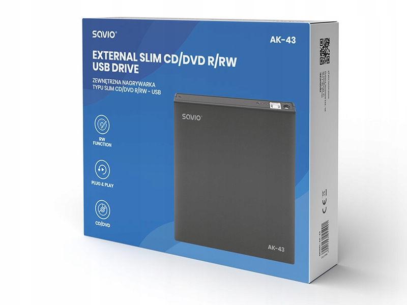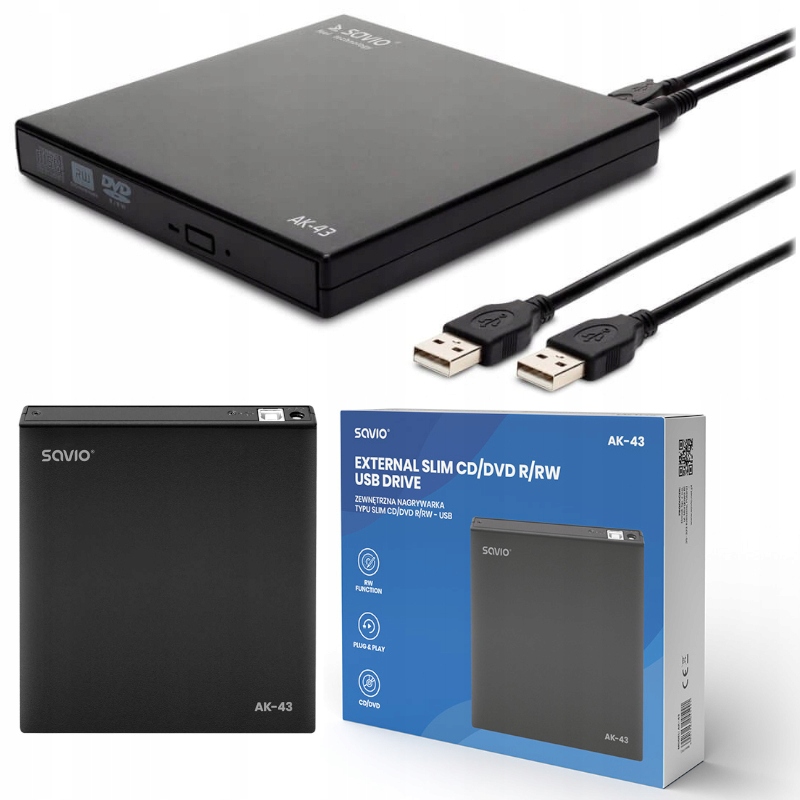 ЗОВНІШНІЙ ПРИСТРІЙ USB-ЗАПИСУВАЧ SAVIO AK43 ПОРТАТИВНИЙ ПРОГРАВАЛЬНИК CD-R DVD-RW