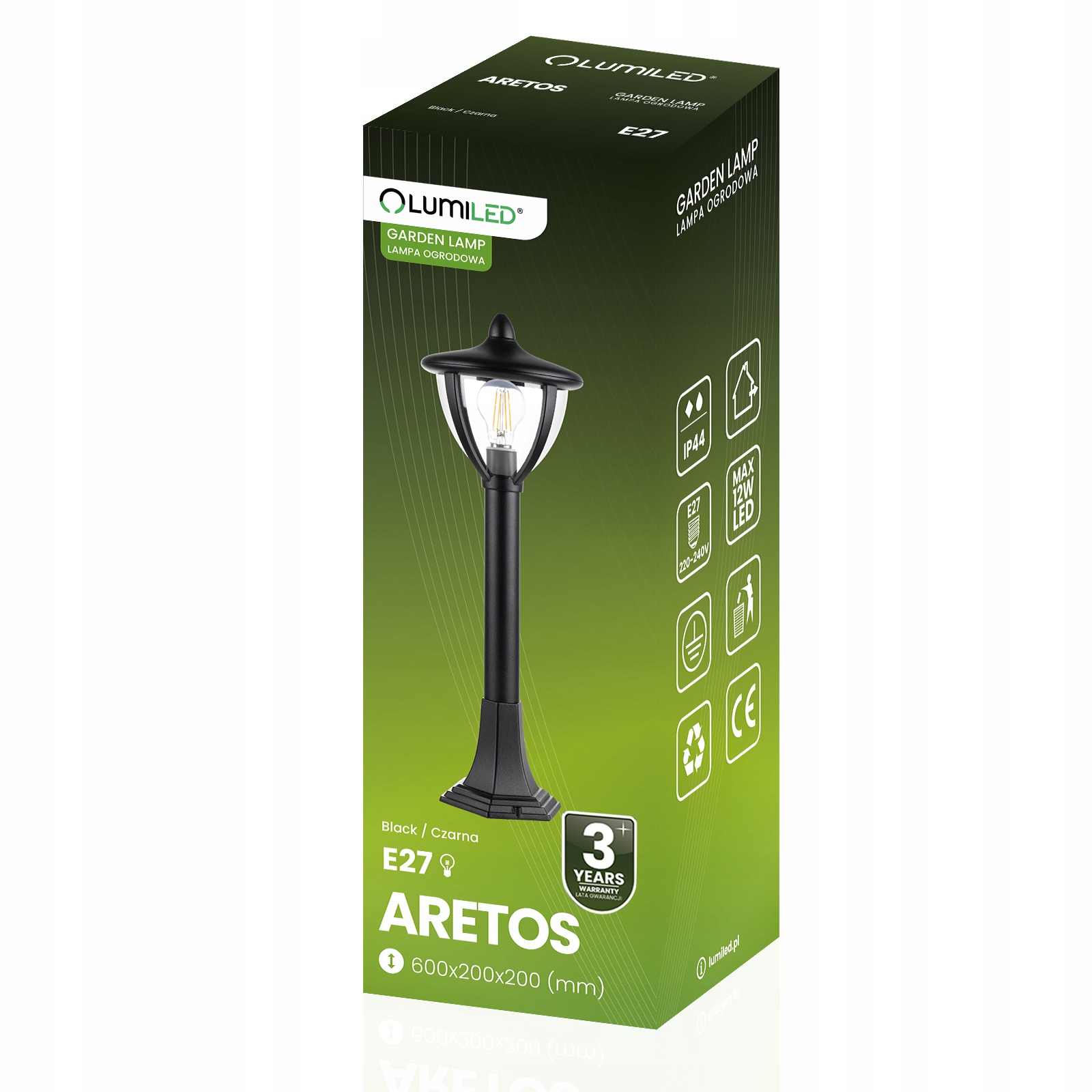 Садовый светильник на стойке E27, светодиодный фонарь ARETOS 60 см LUMILED