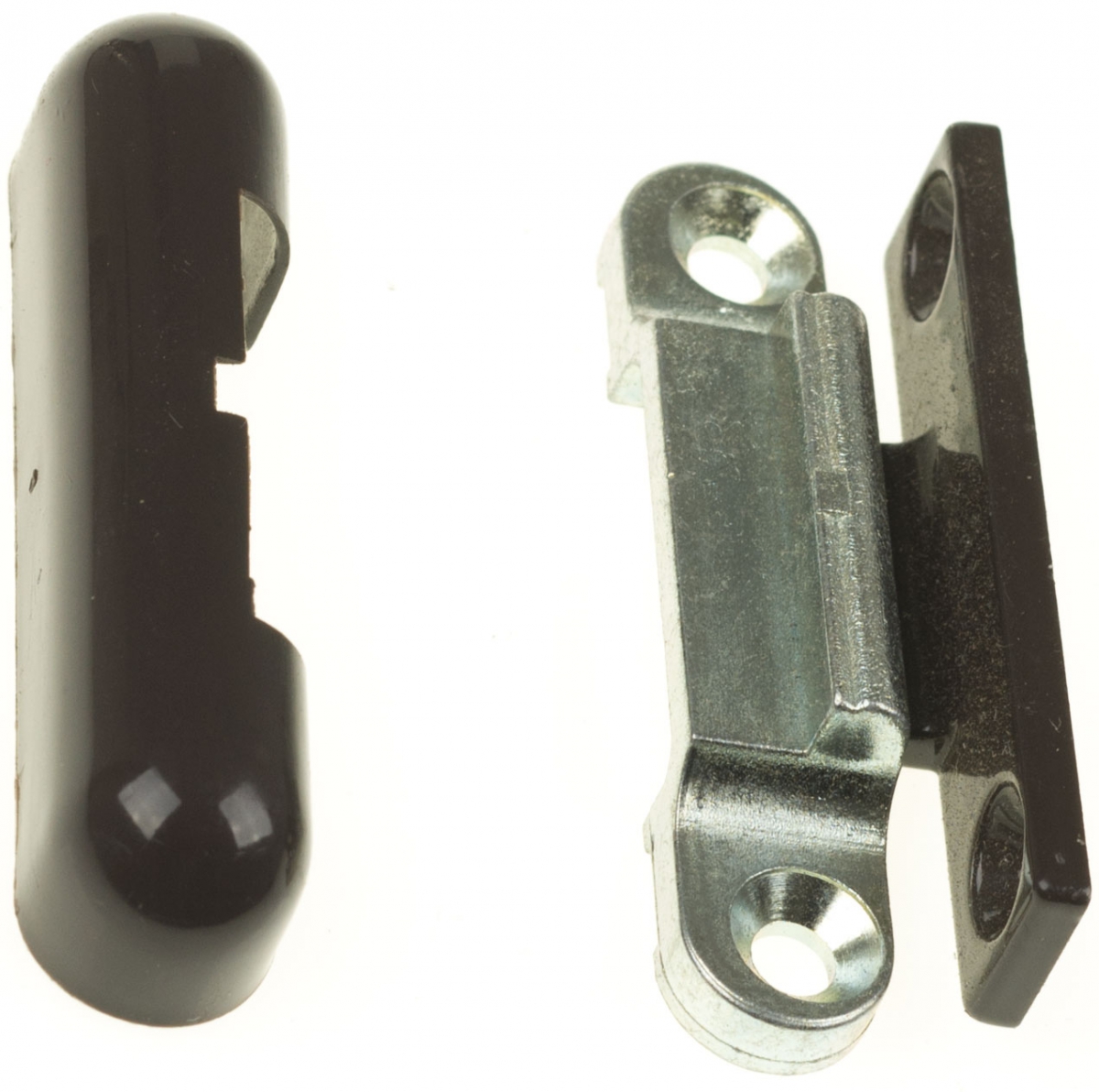 В комплект входит зажим и пластиковая крышка, маскирующая металлический элемент. Часть прижима к раме и створке в заводских условиях соединена заклепками, что существенно упрощает монтаж, элементы отделяются друг от друга автоматически при первом открытии двери/окна.