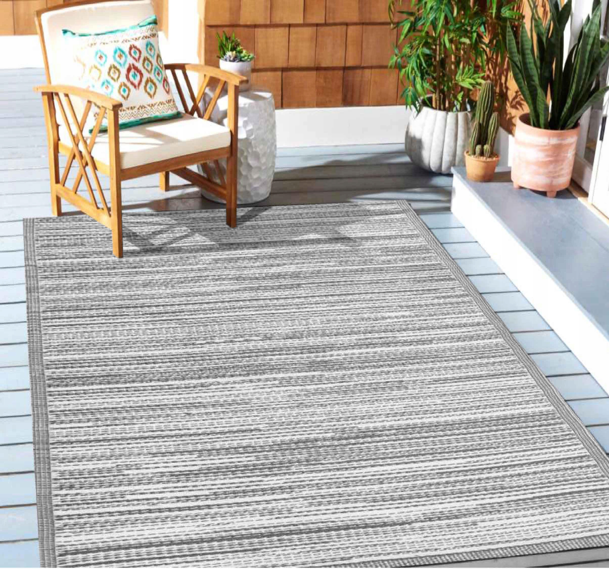 Плотный и прочный плетение обеспечивает высокую гибкость и устойчивость к деформации. Благодаря использованию водонепроницаемого и прочного материала коврик имеет множество применений. Идеально подходит в качестве уличного ковра, домашнего ковра, садового ковра. Он также хорошо подойдет в качестве коврика для пикника, пляжного коврика, коврика для кемпинга.