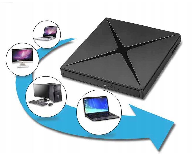 Чрезвычайно продвинутый портативный внешний диск USB 3.0 с USB-портом и USB-C с функцией CD и DVD-записи и воспроизводства . Инновационный продукт, который сочетает в себе функциональность CD/DVD -накопителя с USB -концентратором и чтением карты . Привод имеет встроенных портов USB 2.0/3.0 и считывателя SD -карты , так что вы также можете подключить внешний диск мышь или флэш -накопитель и другие USB -устройства.