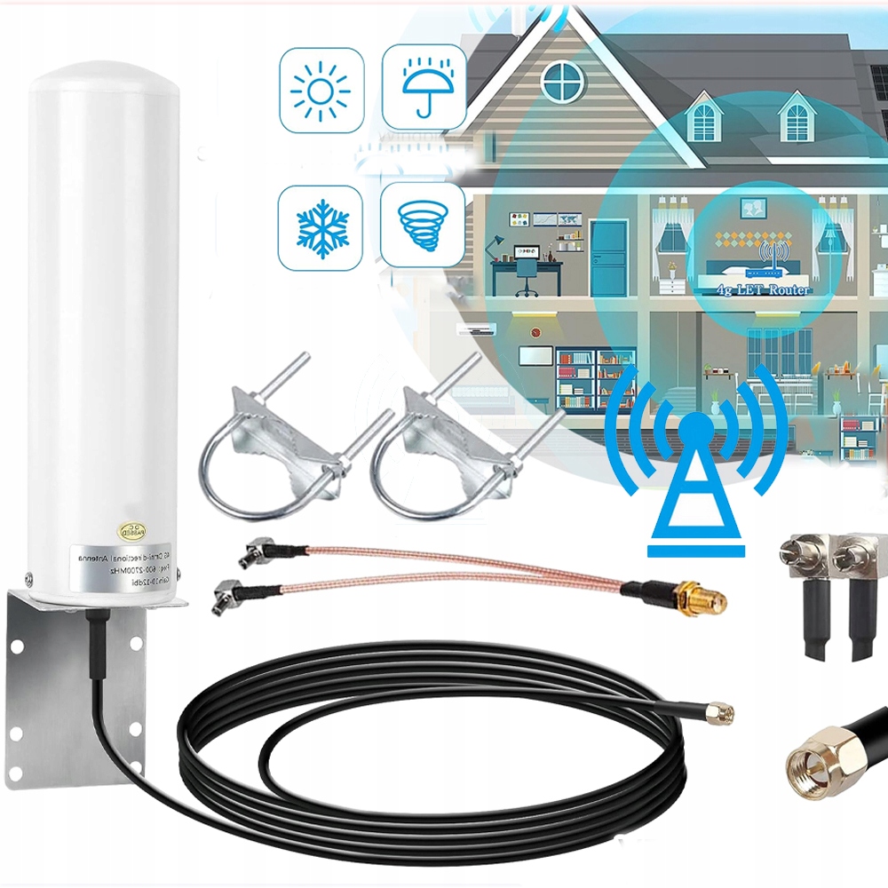 1️⃣Диапазон частот антенны 4G LTE 3G с высоким коэффициентом усиления: 698–960 МГц, 1710–2170 МГц, 2300–2700 МГц; Усиление: 10-12 дБи; всенаправленный; КСВ: <2,0; Импеданс: 50 Ом; Водонепроницаемый; Антенный разъем: SMA «папа»; Кабель: коаксиальный кабель RG58 длиной 5 метров;