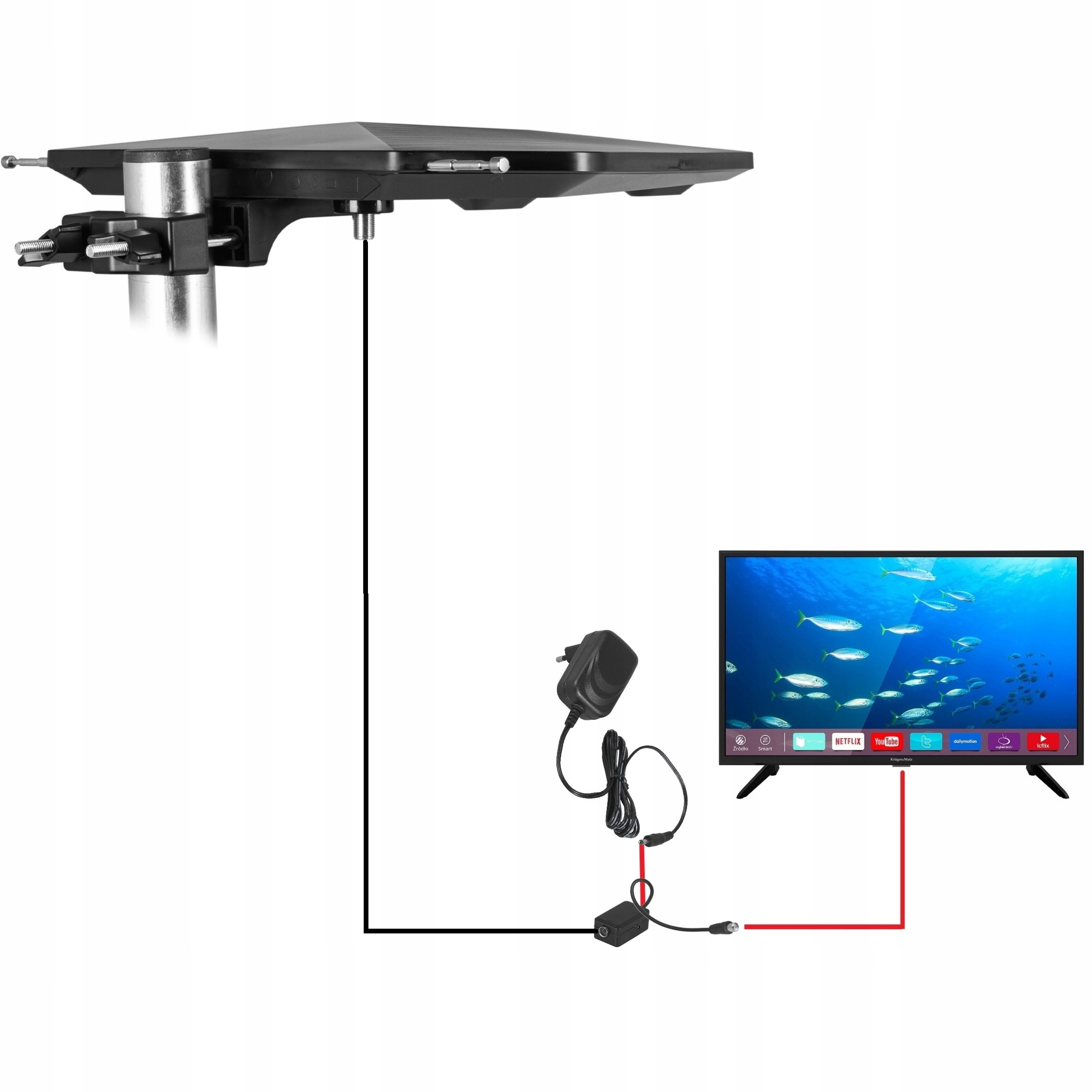 Антенна просто установлена в направлении передатчика подключить шнур с телевизором или декодером, и это это !!! Вам не нужны дополнительные элементы.
