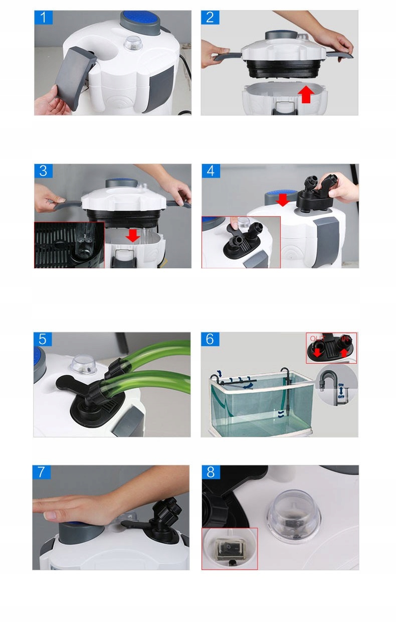 фильтр HW-303A имеет специальную систему аква-стоп, которая блокирует водоснабжение от фильтра змей, что позволяет их отключить от крышки. Эта система будет необходима для выполнения любых работ по уходу в аквариуме.