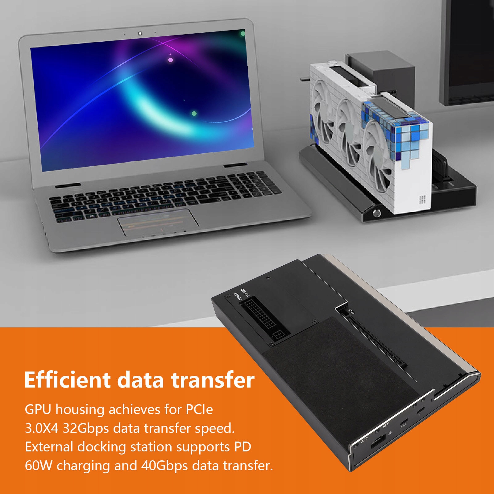 3. Повышение производительности: наша внешняя док-станция с графическим процессором поддерживает зарядку PD мощностью 60 Вт и передачу данных со скоростью 40 Гбит/с, совместима с графическими процессорами PCIe x16, оснащена 2 портами TB3, гигабитными разъемами RJ45 и твердотельными накопителями M.2 NVMe.