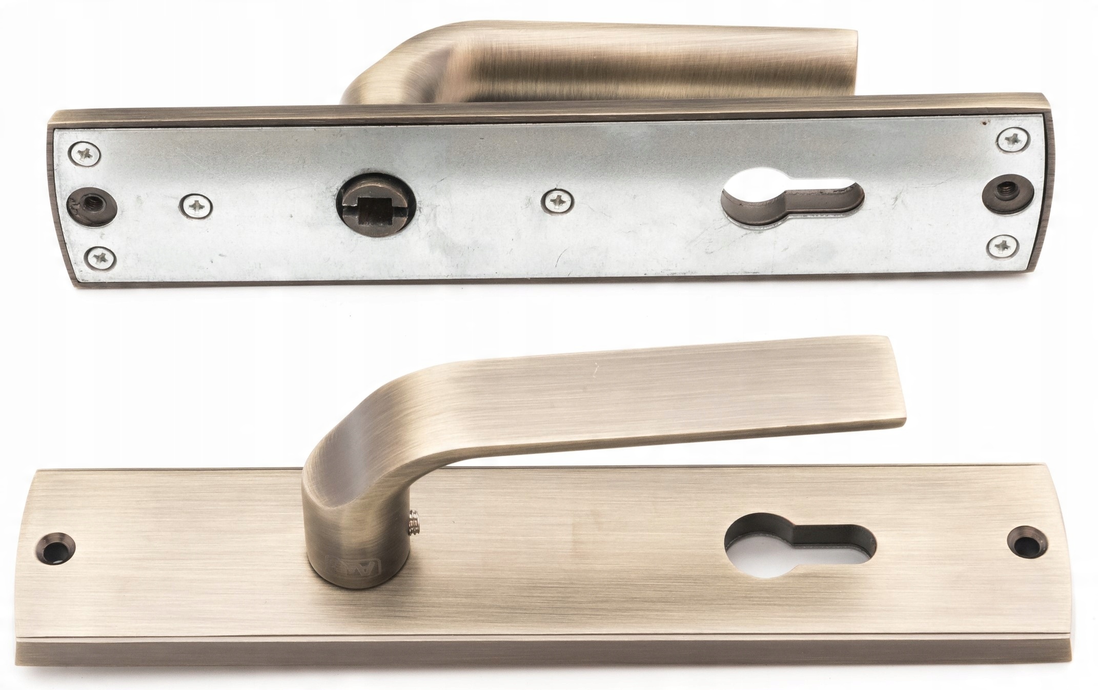 Ручка входная дверная A&B LAMBDA. Рукоять изготовлена из высококачественных материалов (ZnAl). Дополнительное анодированное покрытие пластин защищает ручки от атмосферных воздействий.