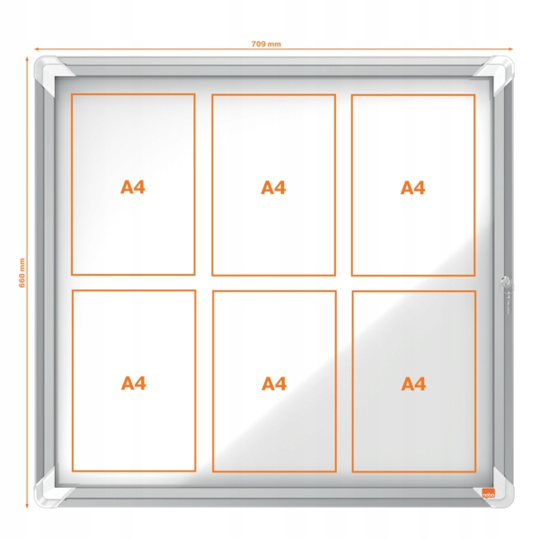 Магнитная рекламная витрина, внешняя, устойчивая к атмосферным воздействиям, со стеклянными дверцами, закрывающимися сбоку на ключ, предоставит Вам идеальную поверхность для безопасного отображения подготовленной информации. Обрамлен современной стильной алюминиевой рамкой. Крепится к стене по углам. Размер: 6 листов А4.