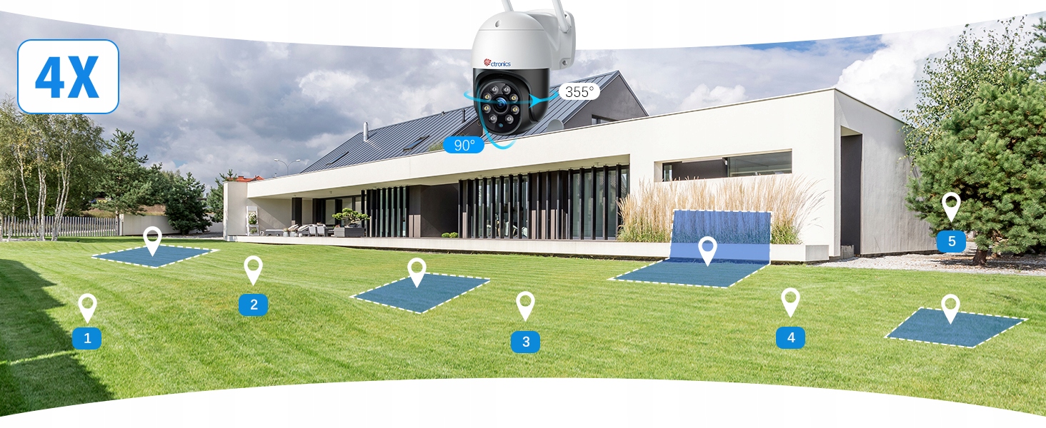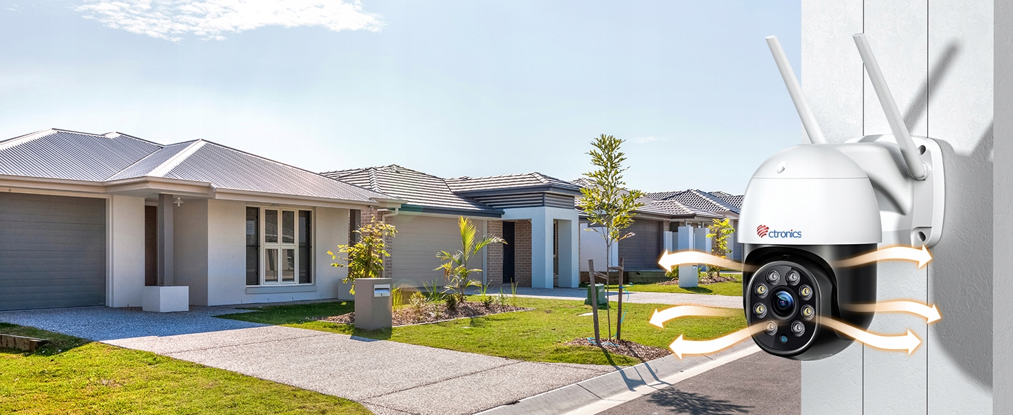 - ⭐Камеру наружного наблюдения Ctronics можно поворачивать по горизонтали на 355° и по вертикали на 90°. Он также поддерживает 8 предустановленных точек, поэтому вы можете контролировать весь дом.
