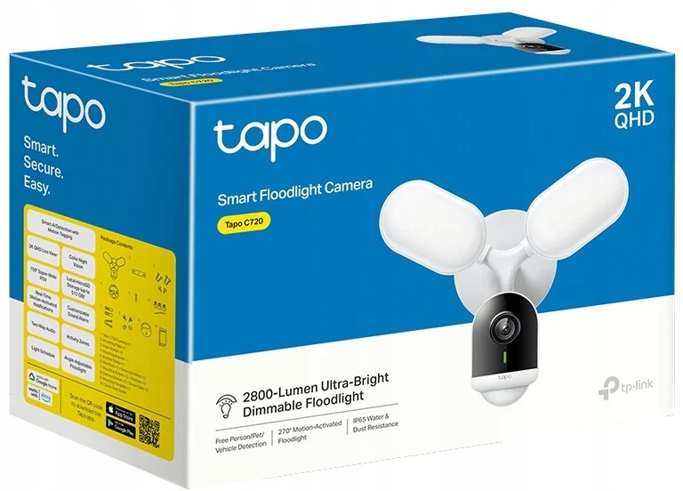 TP-Link Tapo C720 Внешняя камера с 2K QHD 2800L IP65 Wi-Fi фары