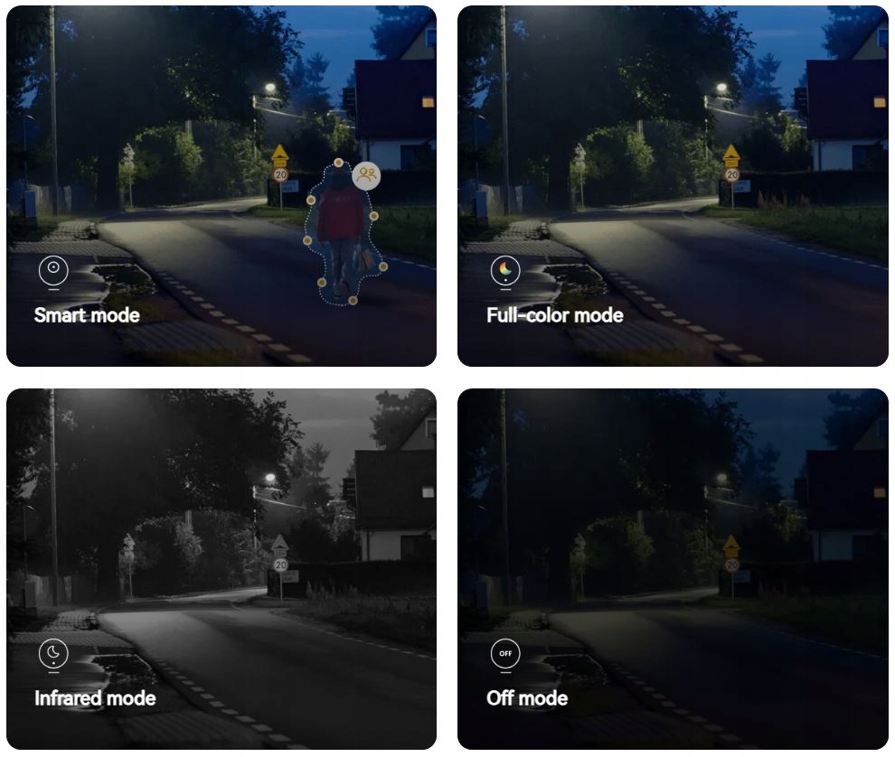 Imou Cell 3C All In One предлагает интеллектуальные режимы ночного видения, которые можно адаптировать к вашим потребностям. Вы можете выбрать полноцветный ночной режим или сэкономить энергию, включив полноцветный режим только при обнаружении движения. Камера использует алгоритмы обнаружения людей, обеспечивая эффективную работу и длительное время автономной работы.