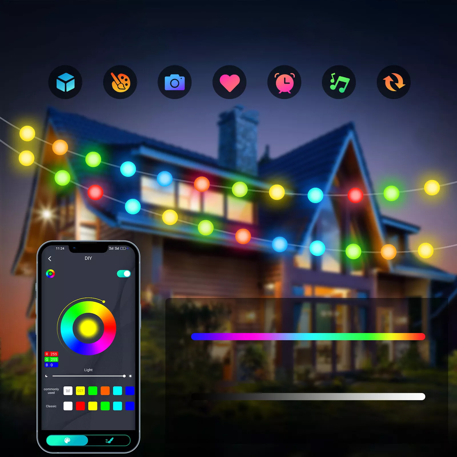 5 метров в длину с 50 мягкими, не каменными огнями в матовой отделке. Выберите из разных цветов, чтобы создать индивидуальный вид. Используйте камеру телефона, чтобы запечатлеть цвет и синхронизировать ее с помощью легкой струны, чтобы облегчить регулировку.