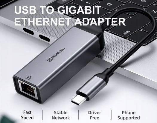 Зовнішня мережева карта USB-C / RJ45 1000Mbit/s REAL-EL CE-150 Метал