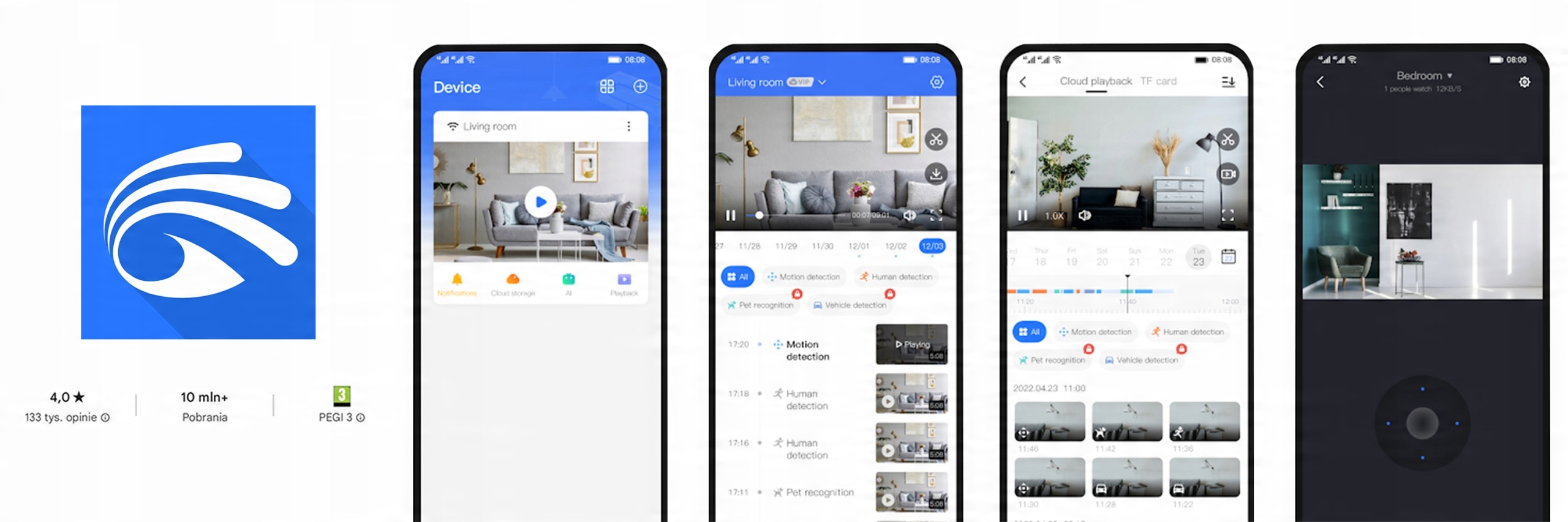 Приложение позволяет удаленно управлять всеми функциями устройства. Дополнительным удобством для пользователей, не желающих подключать камеру к сети, является работа в режиме AccesPoint (AP) — камера подключается напрямую к телефону, без необходимости доступа к Wi-Fi.