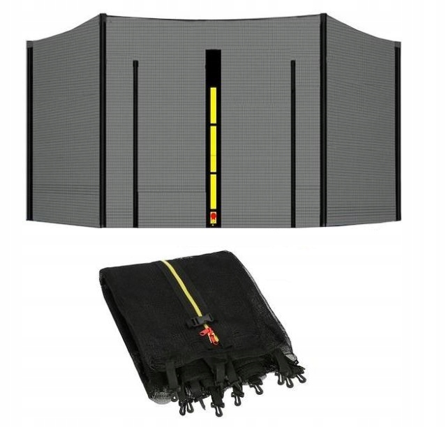 - Быстрая установка - крепится к батуту путем размещения туннелей на стойках, закрепляется внизу с помощью натяжных устройств. к раме батута. Сетка имеет вертикальный вход, закрывающийся на молнию.