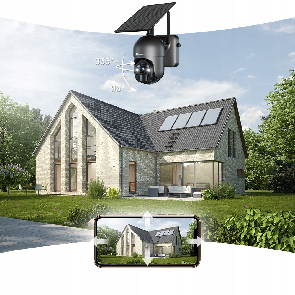 - ✅С возможностью поворота на 355°° и наклоном 95°, вы можете поворачивать уличную камеру на солнечной энергии и камеру слежения на телефоне, чтобы контролировать всю свою собственность, не упуская ни одной детали. PTZ WLAN-камера обеспечивает высочайший уровень безопасности вашего дома.