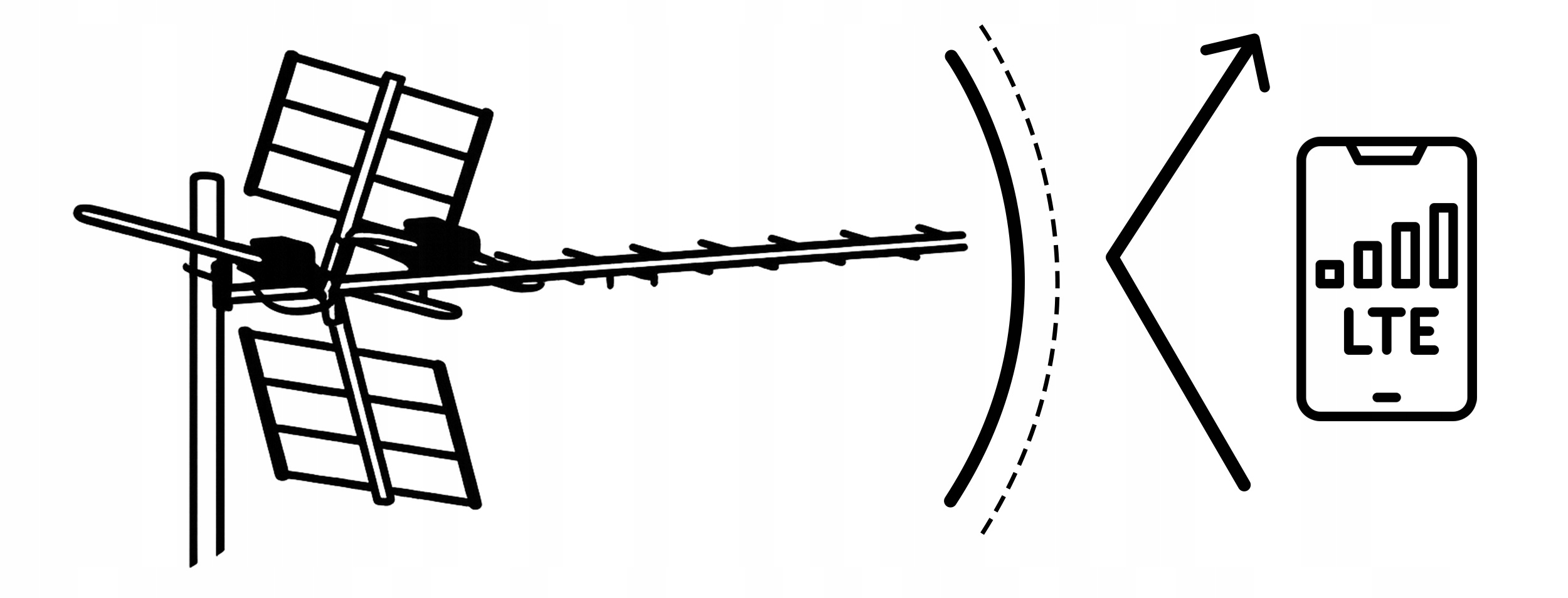 Антенна имеет встроенный фильтр LTE, который устраняет помехи, вызванные мобильными сетями (например, 4G/ 5G).