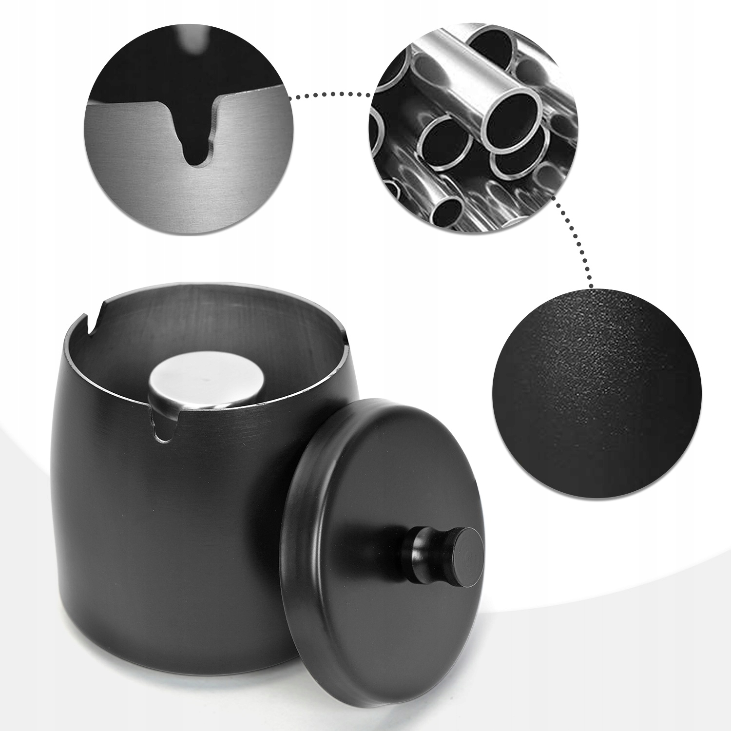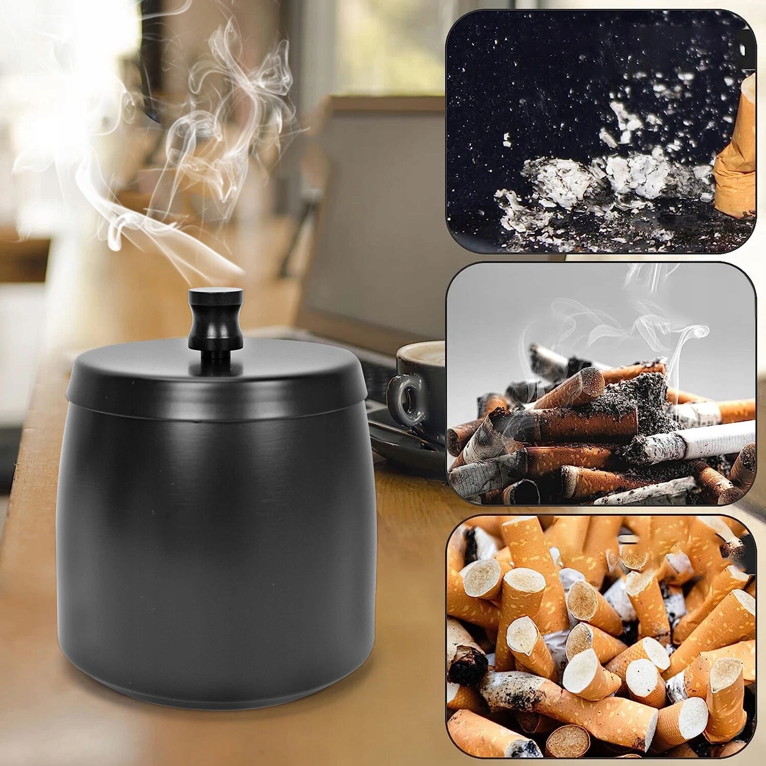 ✅️Высококачественная утолщенная нержавеющая сталь: Эта черная пепельница с крышкой изготовлена из матовой нержавеющей стали, которая хорошо держит форму и не царапает руки. Пепельница устойчива к окислению и коррозии, что обеспечивает длительный срок службы. В отличие от керамических или стеклянных пепельниц, эту черную садовую пепельницу нелегко сломать.