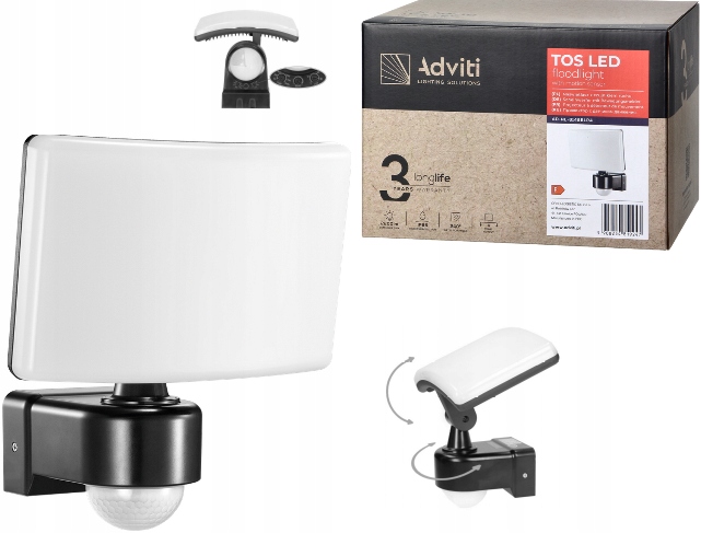 Подвижный корпус позволяет регулировать угол освещения в зависимости от условий окружающей среды (по горизонтали 180°, по вертикали 125°). Датчик обнаруживает движение как днем, так и ночью. Максимальная дальность обнаружения — 10 метров.