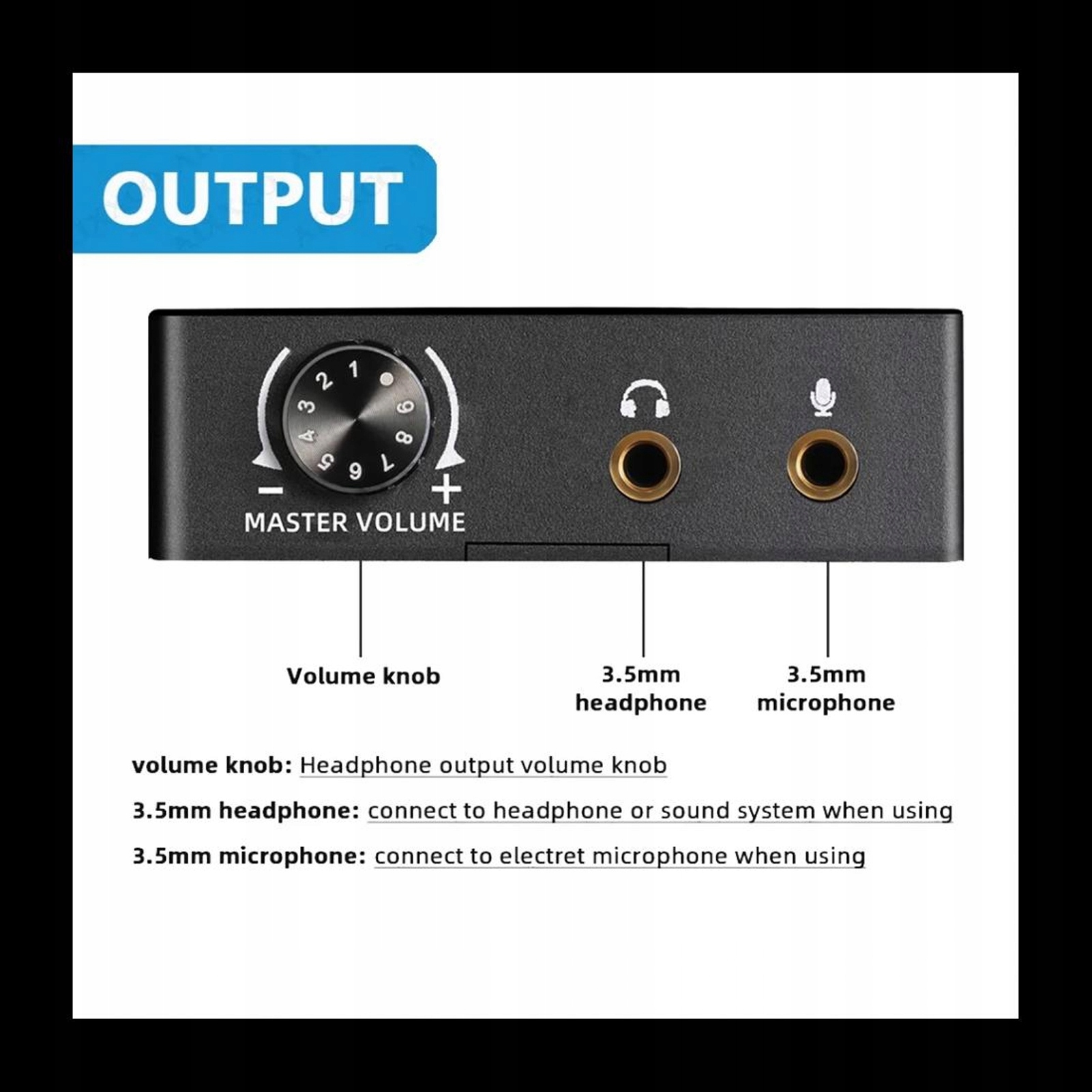 1. Звуковая карта USB: регулировка выходной громкости кронштейна и регулировка низких частот. Передача микрофонного входа и стереовыхода через USB-кабель.