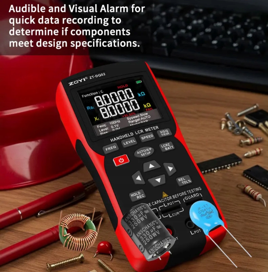 Портативный измеритель LCR ZOYI ZT-DQ02 представляет собой портативный прибор для измерения параметров компонентов LCR. Позволяет измерять индуктивность, емкость, ESR, сопротивление, внутреннее сопротивление аккумуляторов и т. д.