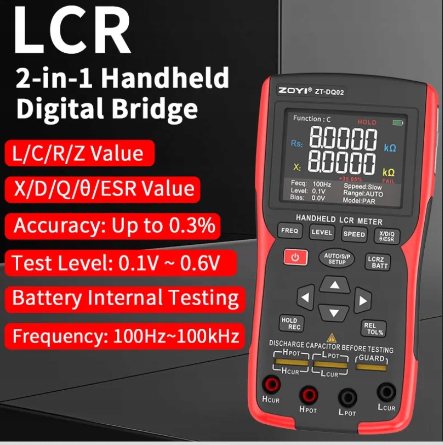 ZOYI ZT-DQ02 RLC Bridge Мультиметр LCR Зонды Кельвина Измерение заряда батареи USB