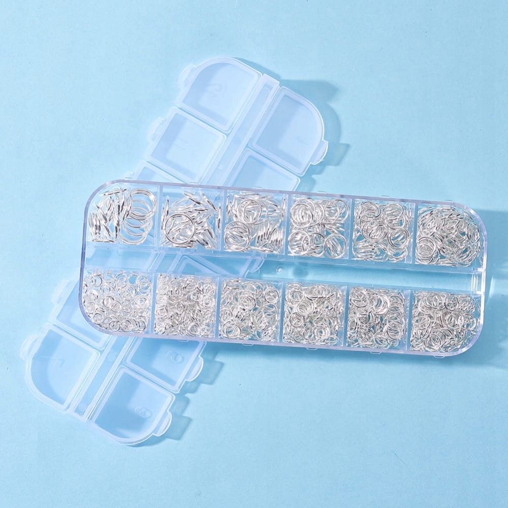 Набор монтажных колец в пластиковом органайзере. Звенья из ювелирного металла. Необходим для изготовления украшений.