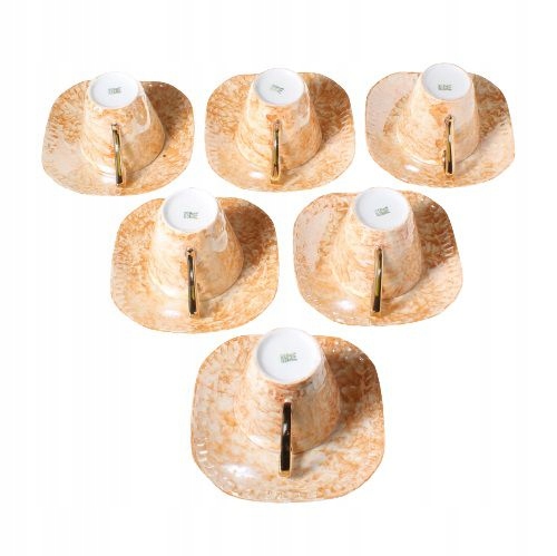 Кофейный сервиз Helena/Millenium на шесть персон. Элементы сервиза декорированы светло-оранжевой, меланжевой краской - их детали и внутренности чашек позолочены. Набор является совместным проектом Эдмунда Рущиньского и Яна Квинты. Произведен на Фабрике фарфоровой посуды «Кшиштоф» в Валбжихе. 1960-е/1970-е годы