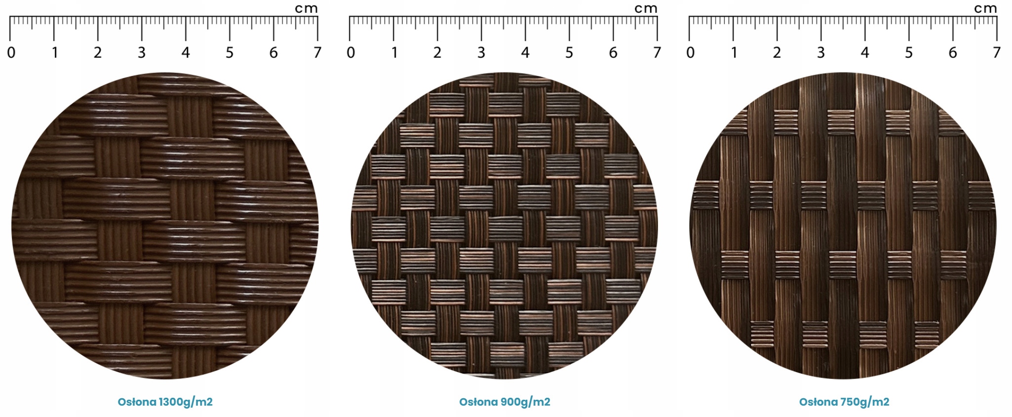 Мы предлагаем широкий выбор цветов, рисунков и размеров, которые можно адаптировать к индивидуальным потребностям. Чехлы и ленты ограждения изготовлены из полос техноротанга различных оттенков, что позволяет подобрать их к любому стилю. Они просты в монтаже и удобны в обработке – при необходимости их можно разрезать самостоятельно, так как они термически защищены и не распускаются после резки. Благодаря высокой устойчивости к механическим повреждениям и УФ-лучам наша продукция сохраняет свои свойства долгие годы. Используемые красители имеют высший класс устойчивости к выцветанию, что обеспечивает стойкость цветов.