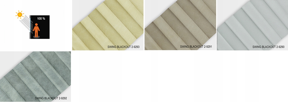 SWING BLACKOUT - 100% ткань блэкаут с функцией отражения солнечных лучей. Мягкая со стороны комнаты и белое покрытие снаружи.