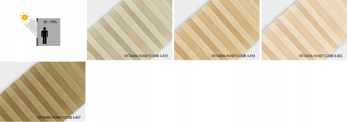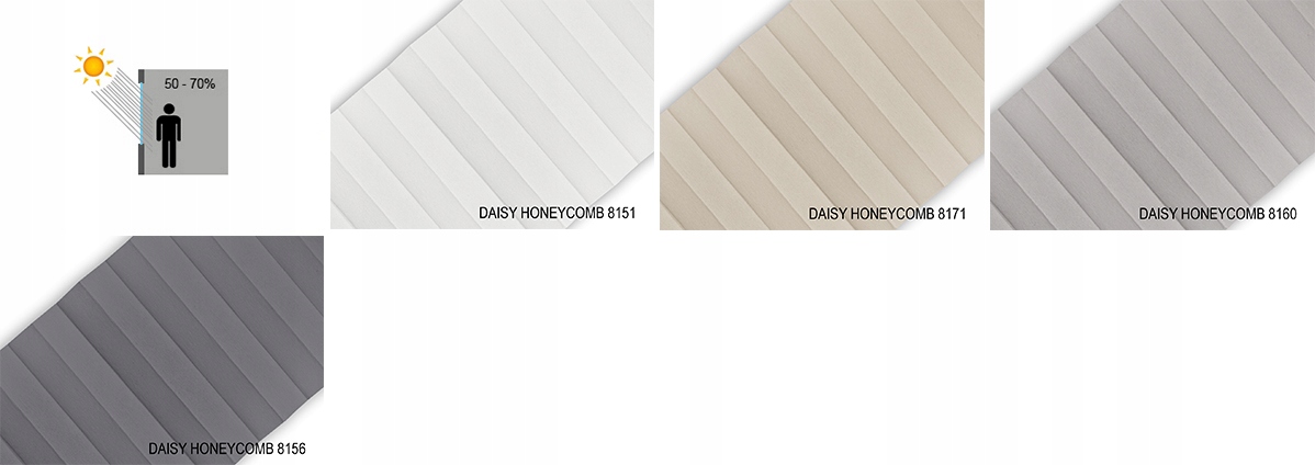 OCTAWIA, MALAYSIA, CALIFORNIA, DAISY, ZOJA HONEYCOMB - материал, комбинированный из двух складок. Для ткани «соты» характерны более мелкие складки в складках. В разрезе он напоминает соты. Кроме того, соты повышают эстетику интерьера, позволяя разместить внутри ткани струнные механизмы и направляющие.