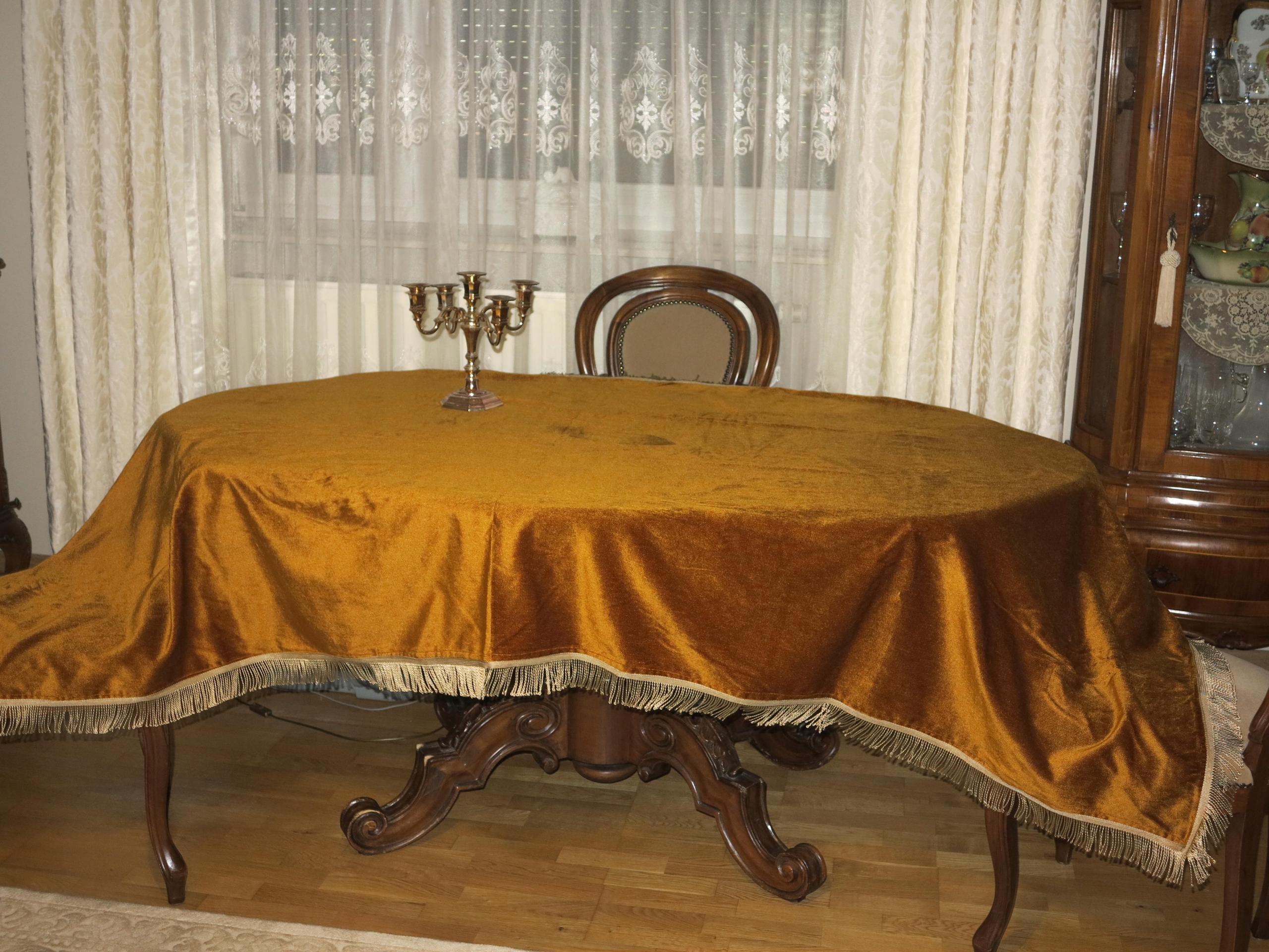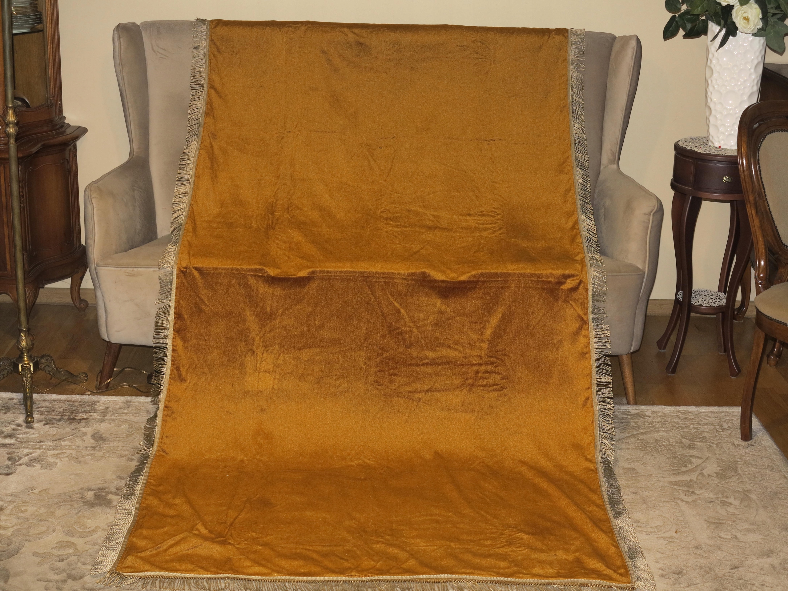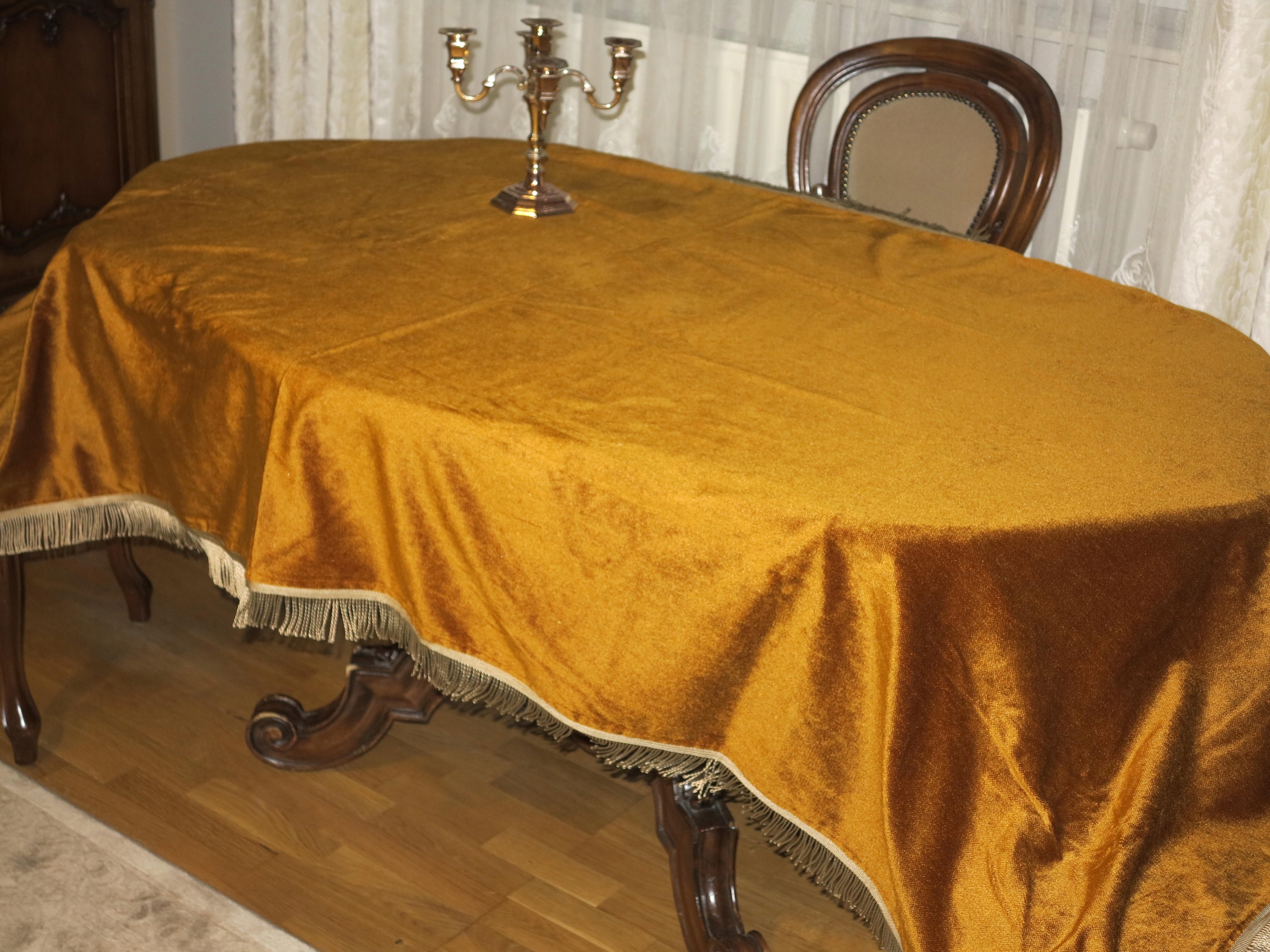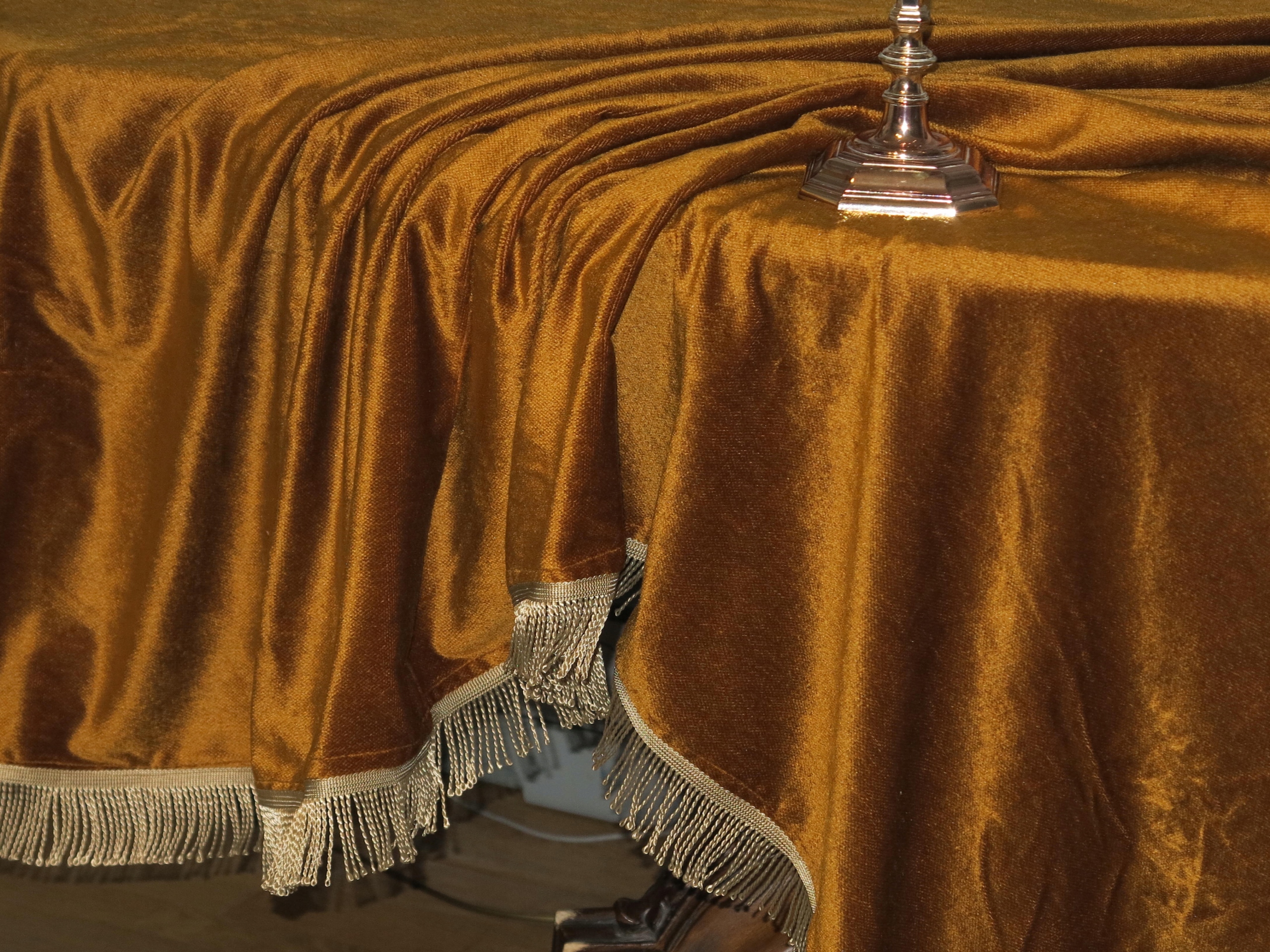 ЗРАЗОК СКАТЕРТИНИ ЩІЛЬНИЙ ОКСАМИТ СТАРОВЕ ЗОЛОТО БАХРОМА 241/125+5