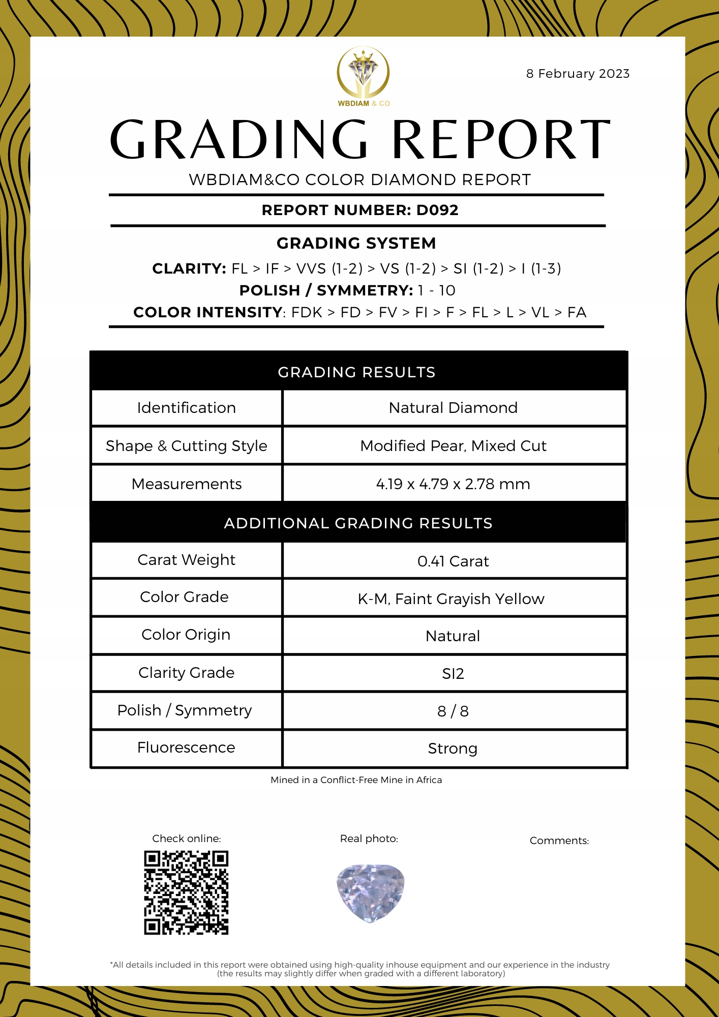 Сертифицировано WBDIAM – НОМЕР ОТЧЕТА: D092 – сертификат доставлен в цифровом виде (PDF)