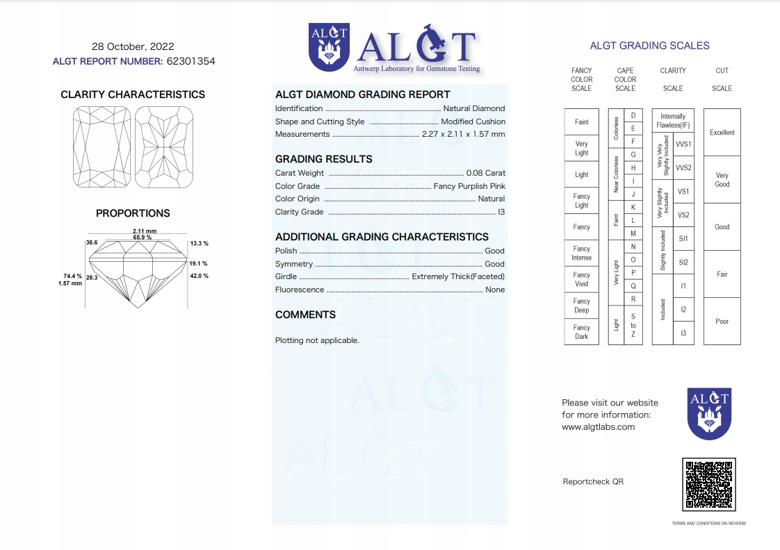 ЗРАЗУ! Натуральний діамант 0,08 карата Рожева подушка I3 ALGT Сертифікат