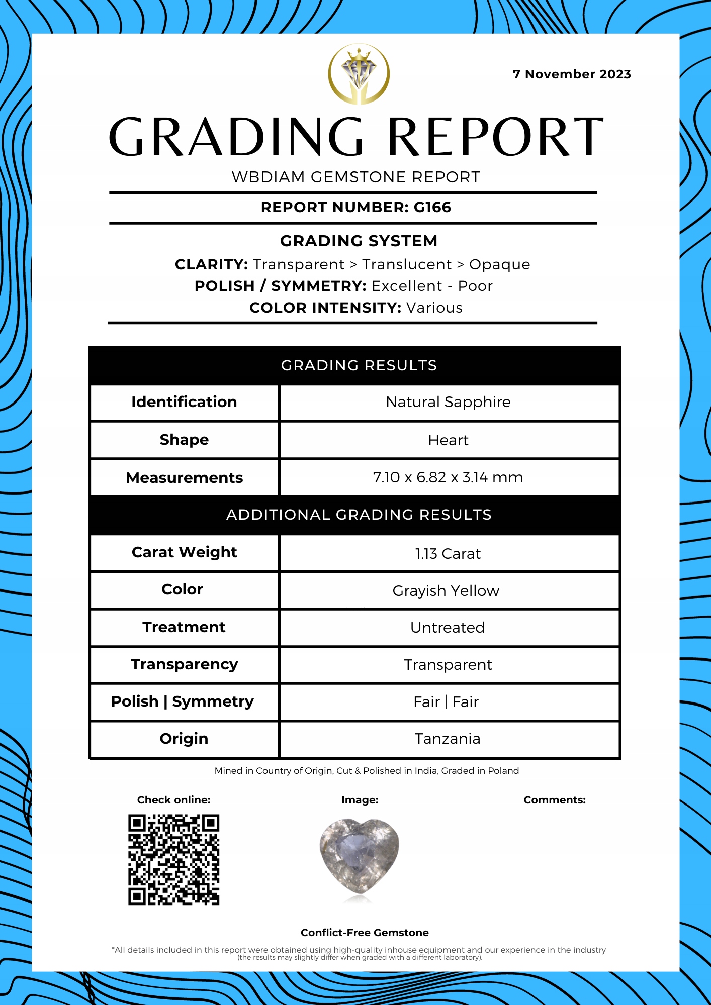 Оценено WBDIAM – номер цифрового отчета:G166
