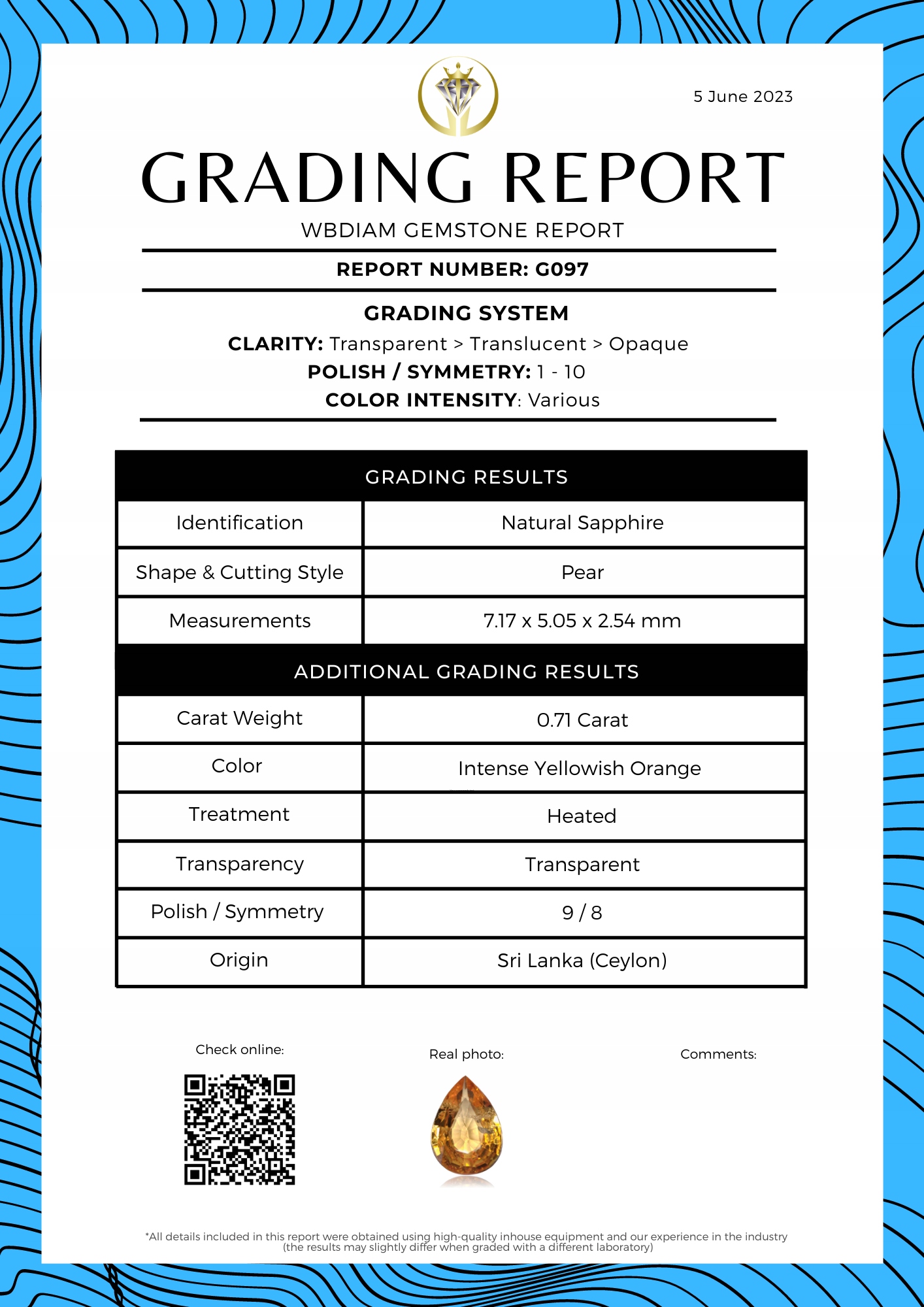 ЗРАЗУ! Сапфір 0,71 карата Помаранчева сльоза