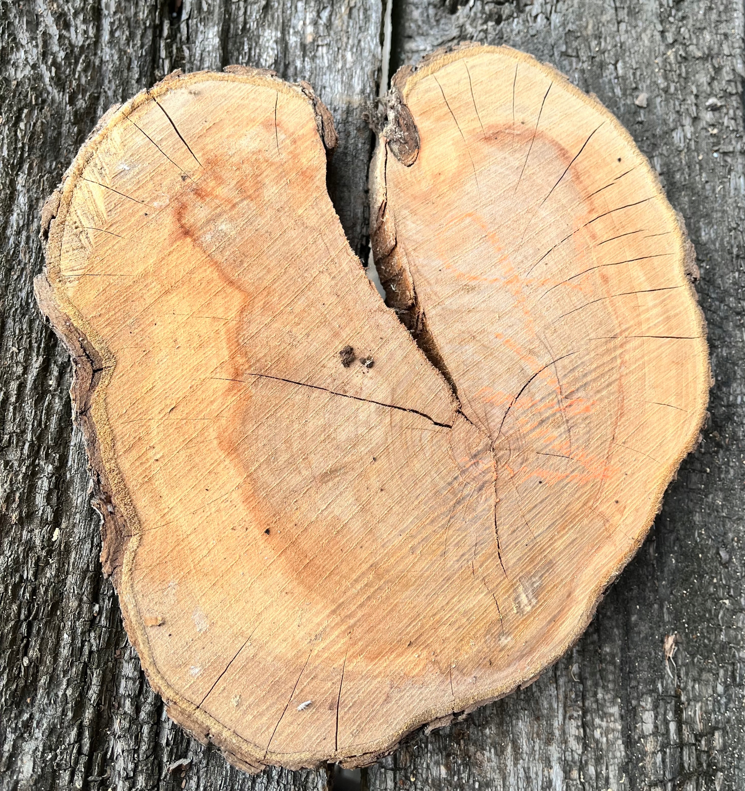 зріз деревини скибочки кореня яблуні під смолою J 11