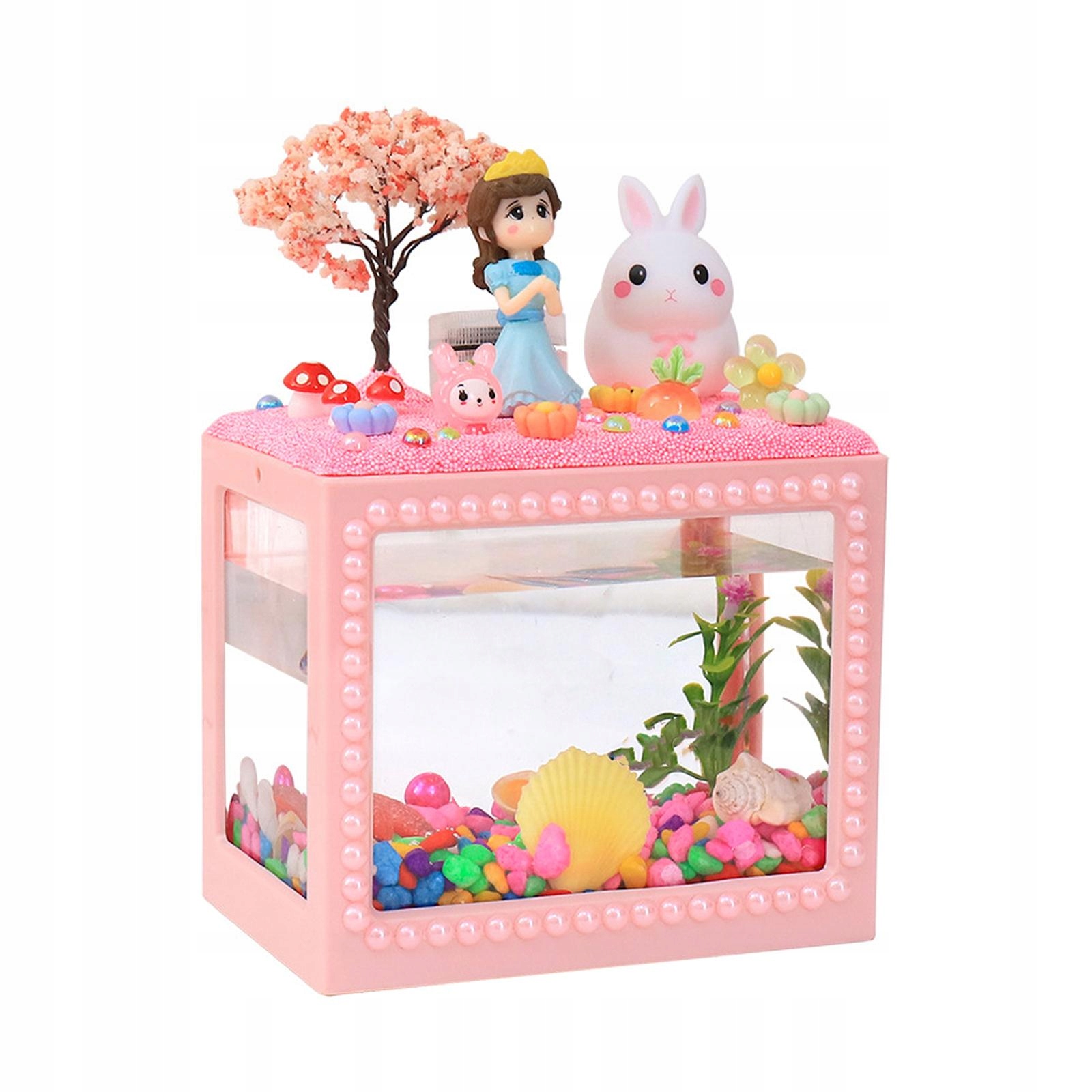 Аквариум для DIY: небольшой аквариум поставляется с различными декоративными аксессуарами, подходящим для детей в течение 4 лет для создания с родителями, для украшения рабочего стола.
