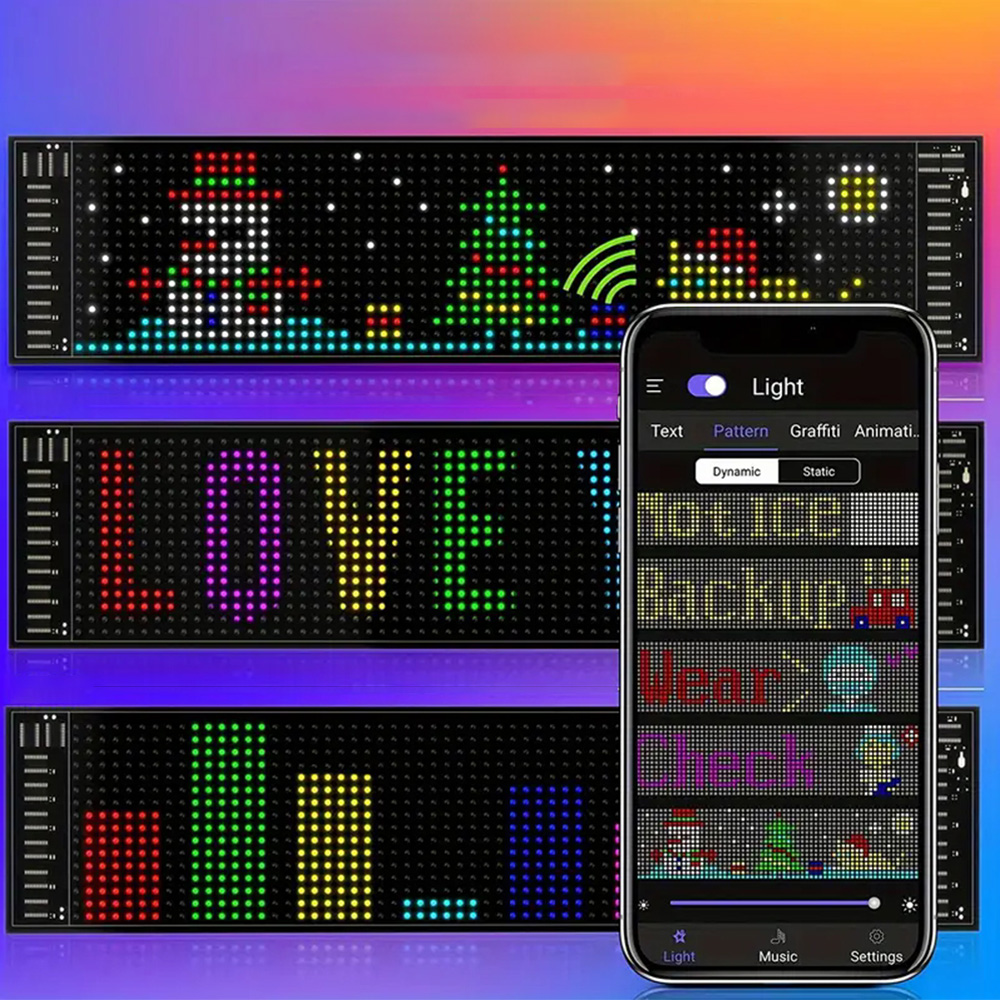 Динамический, программируемый, гибкий светодиодный дисплей DIY для автомобилей может использоваться в барах, ресторанах, магазинах, автомобилях, продавцах улиц, на вечеринках, концертах, свадебных украшениях и многом другом. Скверните свою машину, прикрепляя ультра -высокий светодиодный экран BT к стакану автомобиля.