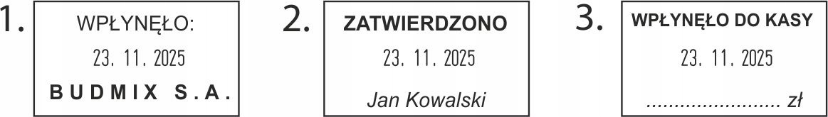 * Мы ждем максимум 24 часа для отправки текста для штампа или дизайна при размещении заказа на Allegro. По истечении этого времени штамп будет отправлен с пустой машиной со случайным цветом корпуса и чернильной вставкой.