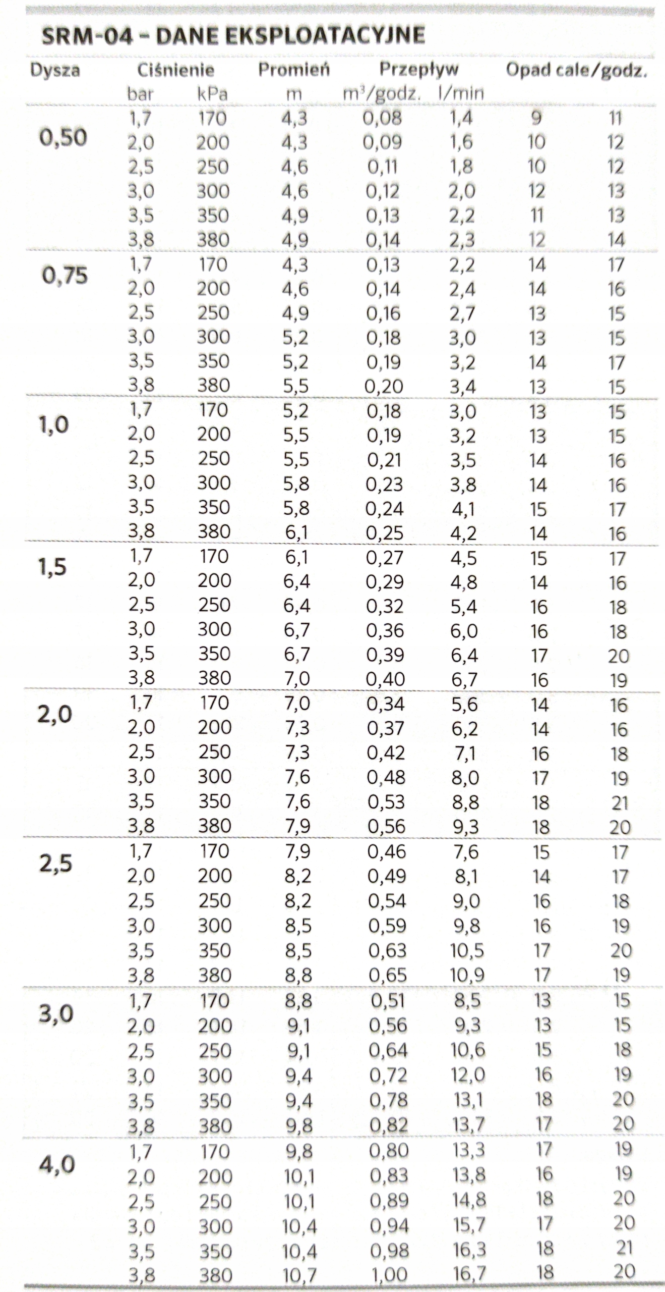 Экономичный ротационный ороситель, для использования на площадях средней площади. До сих пор статические спринклеры использовались на небольших площадях. Стандартные ротационные разбрызгиватели не предназначены для работы на небольших площадях. Ороситель СРМ-04 может работать с другими роторными оросителями без необходимости установки дополнительных клапанов.
