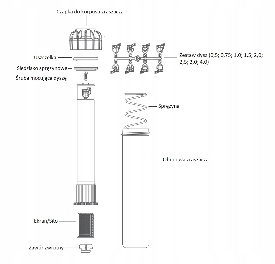 - Разбрызгиватели оснащены фильтром, который защищает форсунки от засорения, задерживая примеси.