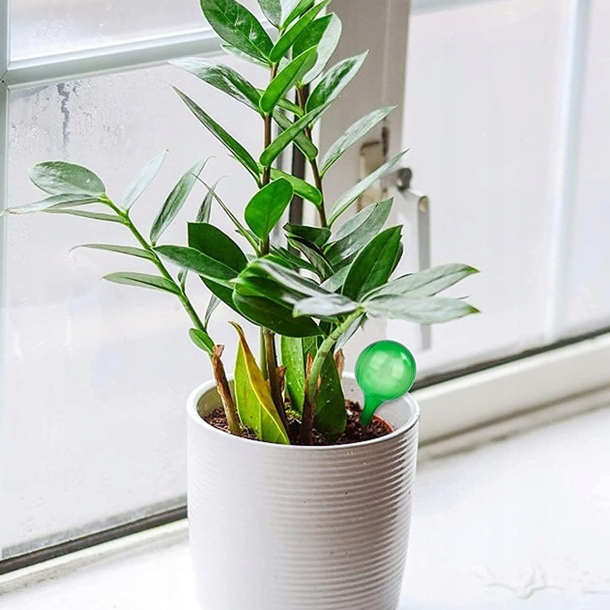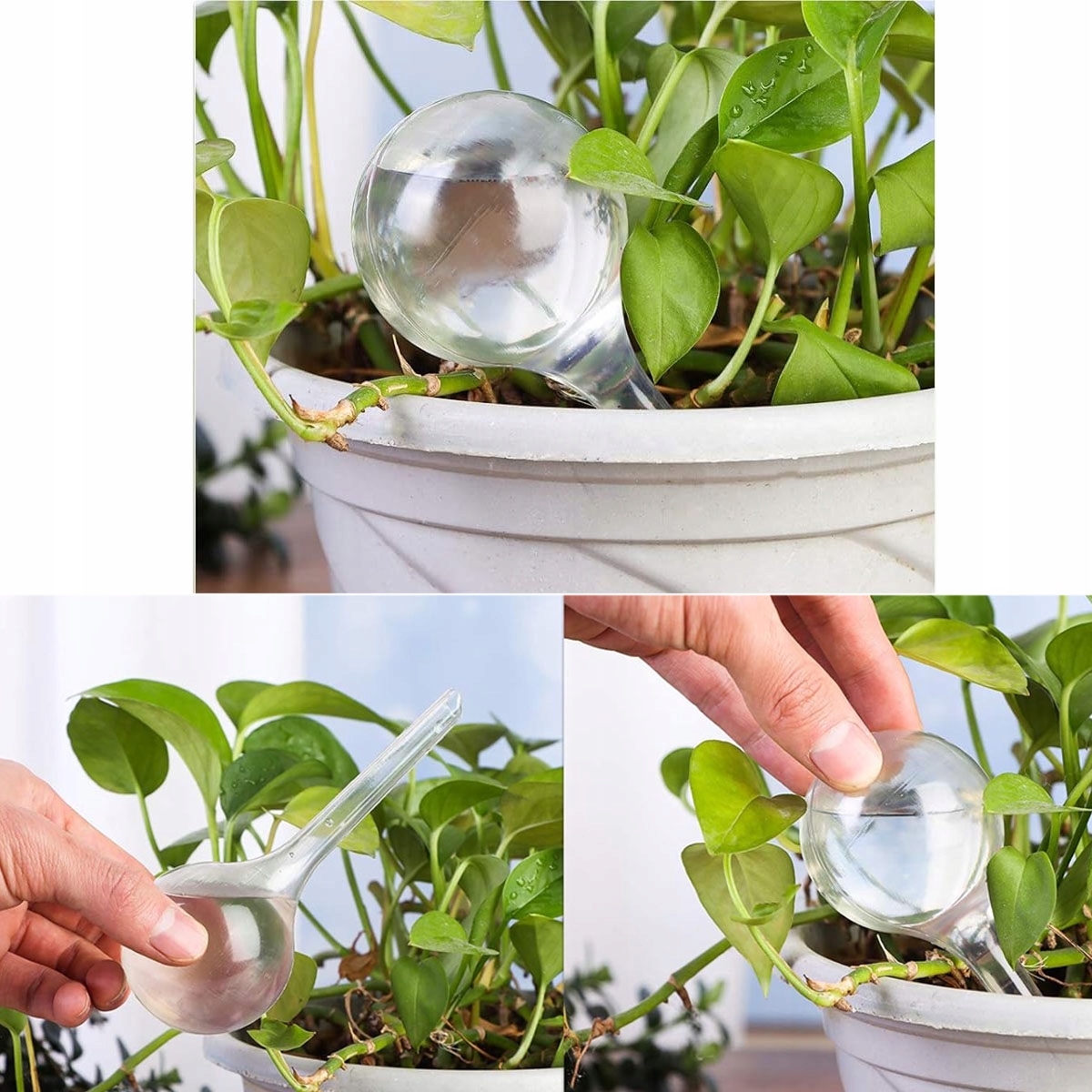 горшечные растения очень проще в использовании. Просто поместите его вертикально в землю после заполнения водой, что обеспечивает увлажнение почвы даже в течение длительного отсутствия.