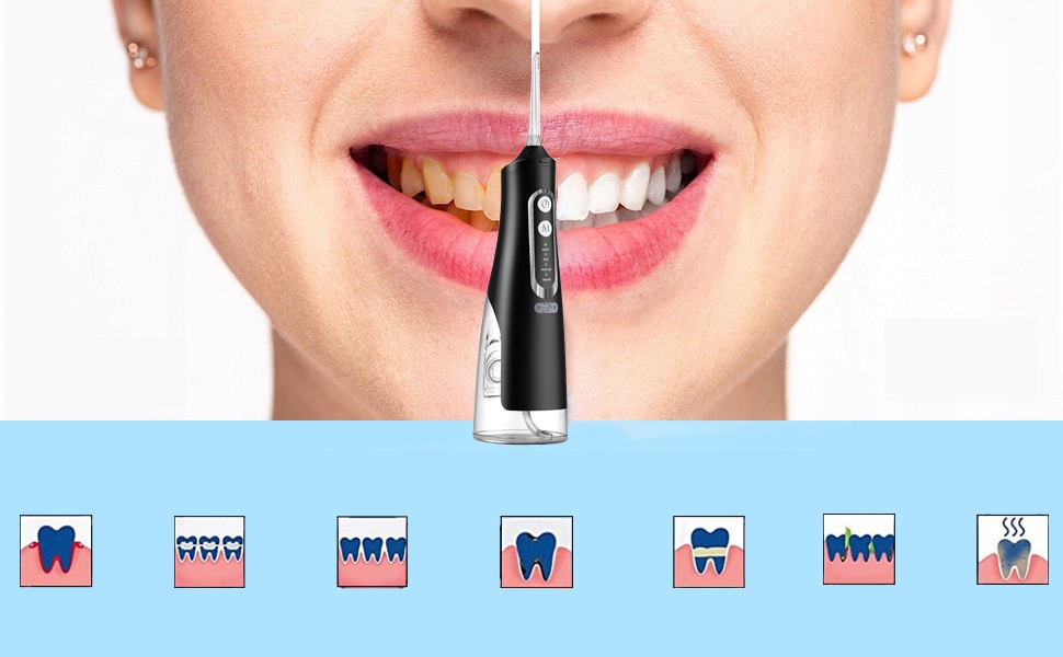 ЗРОШУВАННЯ РОТОВОЇ РОТИ З 4 РЕЖИМАМИ, 8 ФОРСУНКАМИ НА 360° ПОРТАТИВНИЙ 310 МЛ ДЛЯ ДОМУ